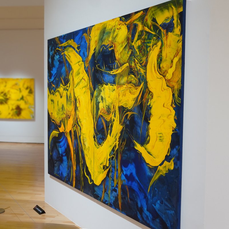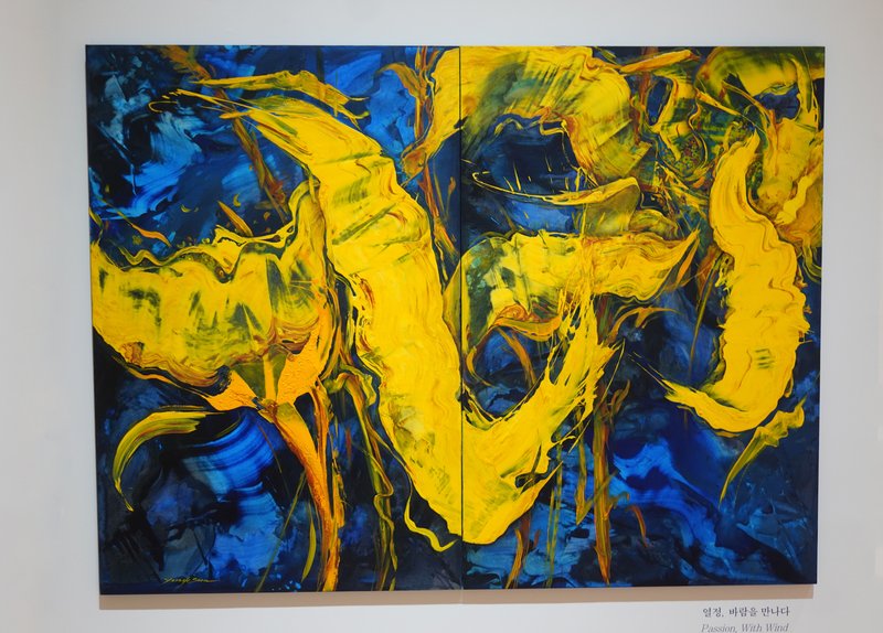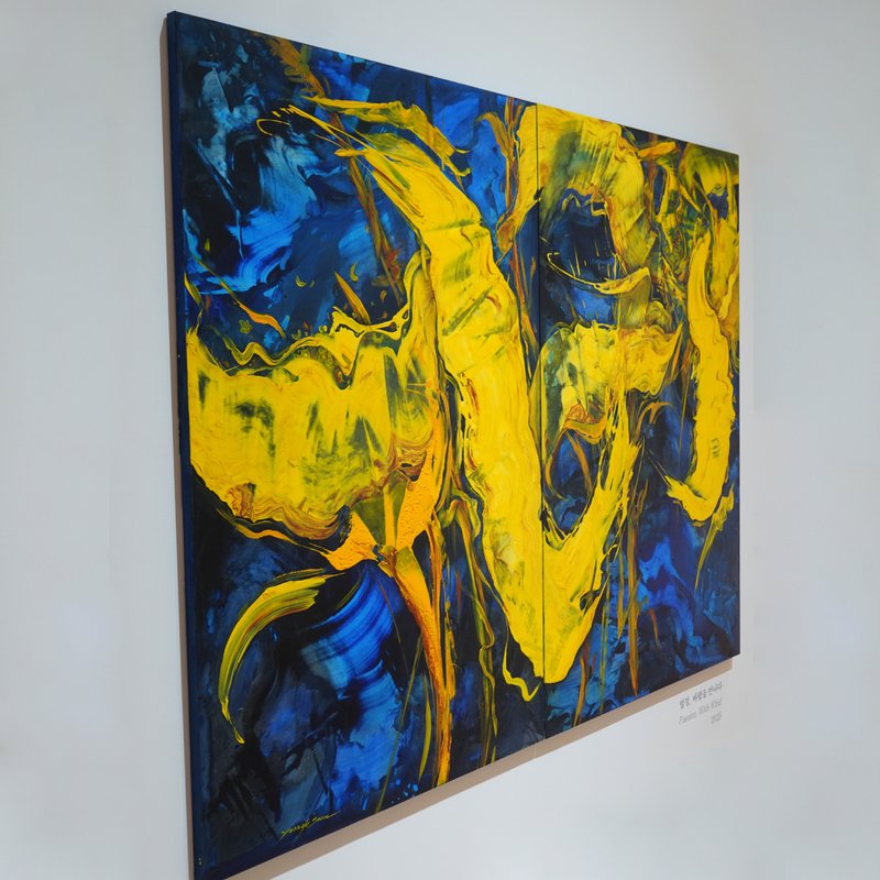 해바라기라는 꽃을 보고 우리가 느끼는 감정들은 무엇일까요? 자기 생명을 태워 한결같이 태양 빛을 쫓아 바라보는 그 집념과 열정. 우리는 아마 그 한결같은 모습에서 매력을 느끼는 것일지도 모릅니다. 윤옥순 작가는 해바라기를 열정과 연관 짓고 있습니다. 정밀한 디테일 묘사보다는 약간의 추상성을 띤 형상은 해바라기라는 대상을 바라보는 작가의 시선이 담긴 부분이 아닐까 합니다. 해바라기의 노란빛을 구현하기 위해 사용된 수많은 색감이 자유롭게 흐르는 모양새는 마치 작열하는 태양 빛을 닮은 듯도 하지 않나요? 윤옥순 작가의 해바라기 작품들이 품은 복합적인 빛깔과 마치 뜨거운 정열을 품은 듯한 감각적인 터치는 공간 안에 색다른 포인트가 되어줄 것입니다.