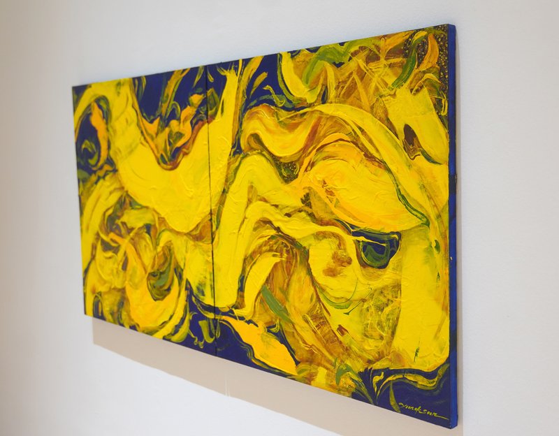 해바라기라는 꽃을 보고 우리가 느끼는 감정들은 무엇일까요? 자기 생명을 태워 한결같이 태양 빛을 쫓아 바라보는 그 집념과 열정. 우리는 아마 그 한결같은 모습에서 매력을 느끼는 것일지도 모릅니다. 윤옥순 작가는 해바라기를 열정과 연관 짓고 있습니다. 정밀한 디테일 묘사보다는 약간의 추상성을 띤 형상은 해바라기라는 대상을 바라보는 작가의 시선이 담긴 부분이 아닐까 합니다. 해바라기의 노란빛을 구현하기 위해 사용된 수많은 색감이 자유롭게 흐르는 모양새는 마치 작열하는 태양 빛을 닮은 듯도 하지 않나요? 윤옥순 작가의 해바라기 작품들이 품은 복합적인 빛깔과 마치 뜨거운 정열을 품은 듯한 감각적인 터치는 공간 안에 색다른 포인트가 되어줄 것입니다.