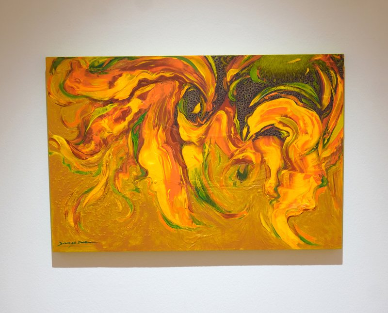 해바라기라는 꽃을 보고 우리가 느끼는 감정들은 무엇일까요? 자기 생명을 태워 한결같이 태양 빛을 쫓아 바라보는 그 집념과 열정. 우리는 아마 그 한결같은 모습에서 매력을 느끼는 것일지도 모릅니다. 윤옥순 작가는 해바라기를 열정과 연관 짓고 있습니다. 정밀한 디테일 묘사보다는 약간의 추상성을 띤 형상은 해바라기라는 대상을 바라보는 작가의 시선이 담긴 부분이 아닐까 합니다. 해바라기의 노란빛을 구현하기 위해 사용된 수많은 색감이 자유롭게 흐르는 모양새는 마치 작열하는 태양 빛을 닮은 듯도 하지 않나요? 윤옥순 작가의 해바라기 작품들이 품은 복합적인 빛깔과 마치 뜨거운 정열을 품은 듯한 감각적인 터치는 공간 안에 색다른 포인트가 되어줄 것입니다.
