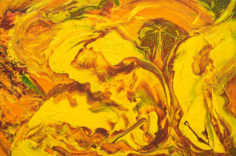 해바라기라는 꽃을 보고 우리가 느끼는 감정들은 무엇일까요? 자기 생명을 태워 한결같이 태양 빛을 쫓아 바라보는 그 집념과 열정. 우리는 아마 그 한결같은 모습에서 매력을 느끼는 것일지도 모릅니다. 윤옥순 작가는 해바라기를 열정과 연관 짓고 있습니다. 정밀한 디테일 묘사보다는 약간의 추상성을 띤 형상은 해바라기라는 대상을 바라보는 작가의 시선이 담긴 부분이 아닐까 합니다. 해바라기의 노란빛을 구현하기 위해 사용된 수많은 색감이 자유롭게 흐르는 모양새는 마치 작열하는 태양 빛을 닮은 듯도 하지 않나요? 윤옥순 작가의 해바라기 작품들이 품은 복합적인 빛깔과 마치 뜨거운 정열을 품은 듯한 감각적인 터치는 공간 안에 색다른 포인트가 되어줄 것입니다.