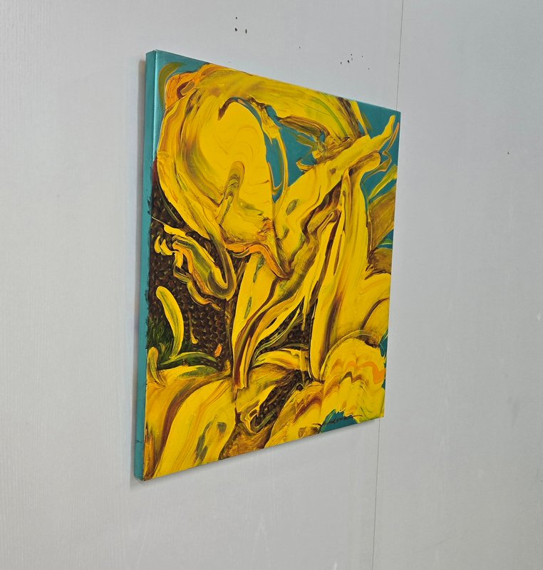 해바라기라는 꽃을 보고 우리가 느끼는 감정들은 무엇일까요? 자기 생명을 태워 한결같이 태양 빛을 쫓아 바라보는 그 집념과 열정. 우리는 아마 그 한결같은 모습에서 매력을 느끼는 것일지도 모릅니다. 윤옥순 작가는 해바라기를 열정과 연관 짓고 있습니다. 정밀한 디테일 묘사보다는 약간의 추상성을 띤 형상은 해바라기라는 대상을 바라보는 작가의 시선이 담긴 부분이 아닐까 합니다. 해바라기의 노란빛을 구현하기 위해 사용된 수많은 색감이 자유롭게 흐르는 모양새는 마치 작열하는 태양 빛을 닮은 듯도 하지 않나요? 윤옥순 작가의 해바라기 작품들이 품은 복합적인 빛깔과 마치 뜨거운 정열을 품은 듯한 감각적인 터치는 공간 안에 색다른 포인트가 되어줄 것입니다.