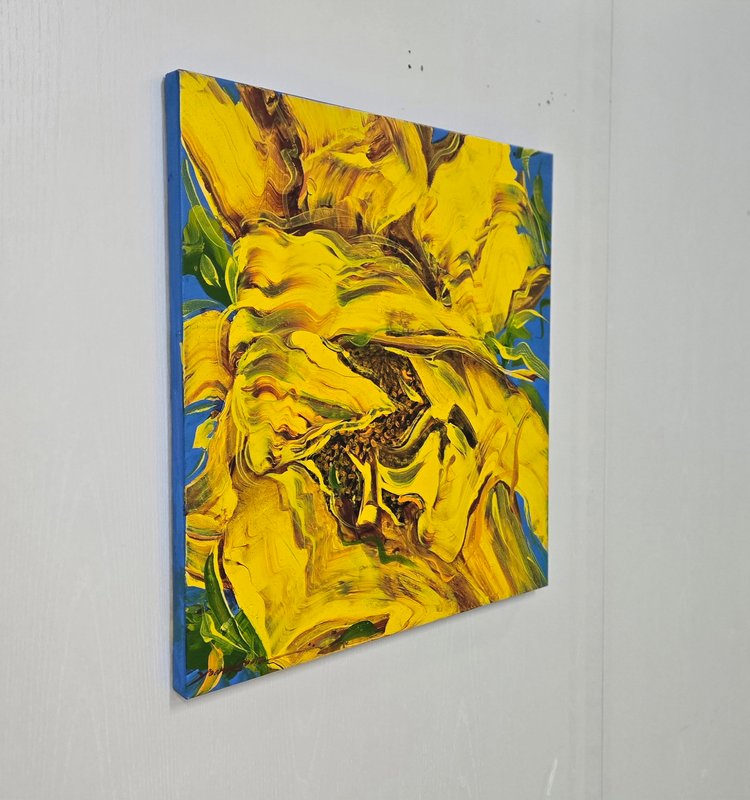 해바라기라는 꽃을 보고 우리가 느끼는 감정들은 무엇일까요? 자기 생명을 태워 한결같이 태양 빛을 쫓아 바라보는 그 집념과 열정. 우리는 아마 그 한결같은 모습에서 매력을 느끼는 것일지도 모릅니다. 윤옥순 작가는 해바라기를 열정과 연관 짓고 있습니다. 정밀한 디테일 묘사보다는 약간의 추상성을 띤 형상은 해바라기라는 대상을 바라보는 작가의 시선이 담긴 부분이 아닐까 합니다. 해바라기의 노란빛을 구현하기 위해 사용된 수많은 색감이 자유롭게 흐르는 모양새는 마치 작열하는 태양 빛을 닮은 듯도 하지 않나요? 윤옥순 작가의 해바라기 작품들이 품은 복합적인 빛깔과 마치 뜨거운 정열을 품은 듯한 감각적인 터치는 공간 안에 색다른 포인트가 되어줄 것입니다.