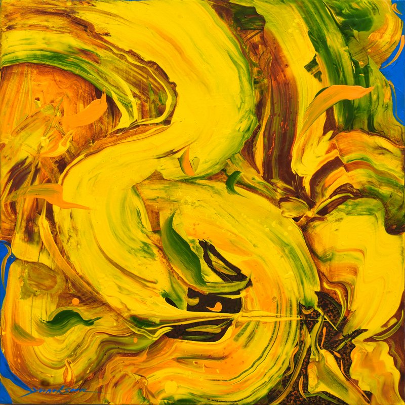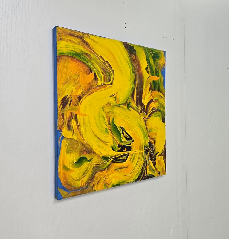 해바라기라는 꽃을 보고 우리가 느끼는 감정들은 무엇일까요? 자기 생명을 태워 한결같이 태양 빛을 쫓아 바라보는 그 집념과 열정. 우리는 아마 그 한결같은 모습에서 매력을 느끼는 것일지도 모릅니다. 윤옥순 작가는 해바라기를 열정과 연관 짓고 있습니다. 정밀한 디테일 묘사보다는 약간의 추상성을 띤 형상은 해바라기라는 대상을 바라보는 작가의 시선이 담긴 부분이 아닐까 합니다. 해바라기의 노란빛을 구현하기 위해 사용된 수많은 색감이 자유롭게 흐르는 모양새는 마치 작열하는 태양 빛을 닮은 듯도 하지 않나요? 윤옥순 작가의 해바라기 작품들이 품은 복합적인 빛깔과 마치 뜨거운 정열을 품은 듯한 감각적인 터치는 공간 안에 색다른 포인트가 되어줄 것입니다.
