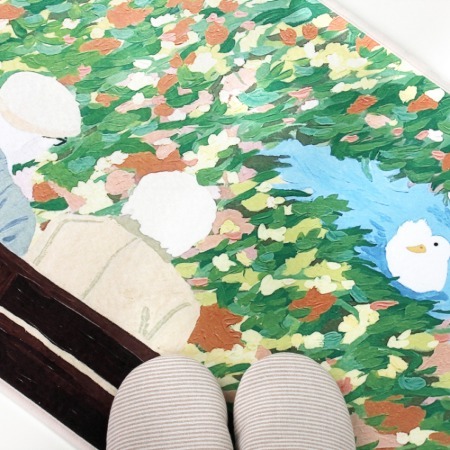 작가의 정원은 힐링을 위한 공간이다. 화려한 색채의 꽃들은 특정 꽃을 나타내지 않는다. 전체로서 놓여진 색채의 향연이다. 작품을 보고 있는 관객은 다른 생각을 할 필요가 없다. 그저 작가가 마련한 정원에서 멍하니 휴식을 취하고 힐링을 하면 된다. 이렇듯 작가의 작품은 단 하나의 순수한 목적만을 가진다. 작가는 꽃들을 통해 ‘땅 위에 피어난 이름 모를 꽃과 풀들이 모두 자연의 주인공이듯, 우리 모두 이 세상의 주인공’이라는 자신의 생각을 전달한다. 또한 작품 안에는 정원과 의자 외의 다른 소재들이 거의 들어오지 않는다. 순수하게 치유받을 공간을 위해 작가는 부차적인 것들을 다 제외하였고, 화려한 색채의 표현들은 화면 안에서 잘 어우러져 차분함을 선사한다. 작품은 관객을 행복하게 만드는 은은한 꽃향기와 같다.
