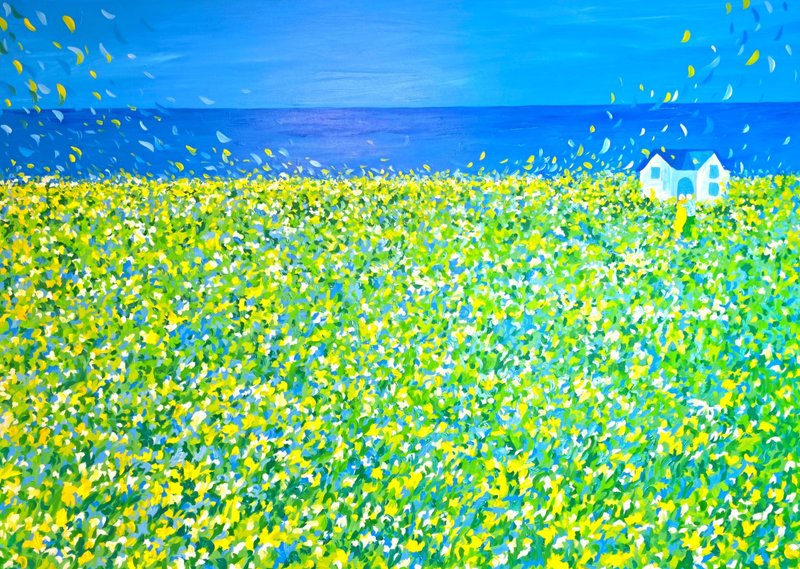 작가의 정원은 힐링을 위한 공간이다. 화려한 색채의 꽃들은 특정 꽃을 나타내지 않는다. 전체로서 놓여진 색채의 향연이다. 작품을 보고 있는 관객은 다른 생각을 할 필요가 없다. 그저 작가가 마련한 정원에서 멍하니 휴식을 취하고 힐링을 하면 된다. 이렇듯 작가의 작품은 단 하나의 순수한 목적만을 가진다. 작가는 꽃들을 통해 ‘땅 위에 피어난 이름 모를 꽃과 풀들이 모두 자연의 주인공이듯, 우리 모두 이 세상의 주인공’이라는 자신의 생각을 전달한다. 또한 작품 안에는 정원과 의자 외의 다른 소재들이 거의 들어오지 않는다. 순수하게 치유받을 공간을 위해 작가는 부차적인 것들을 다 제외하였고, 화려한 색채의 표현들은 화면 안에서 잘 어우러져 차분함을 선사한다. 작품은 관객을 행복하게 만드는 은은한 꽃향기와 같다.