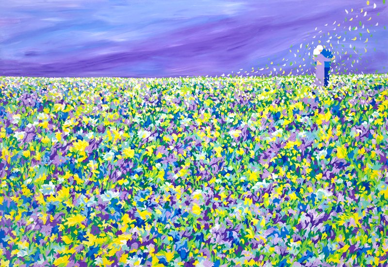 작가의 정원은 힐링을 위한 공간이다. 화려한 색채의 꽃들은 특정 꽃을 나타내지 않는다. 전체로서 놓여진 색채의 향연이다. 작품을 보고 있는 관객은 다른 생각을 할 필요가 없다. 그저 작가가 마련한 정원에서 멍하니 휴식을 취하고 힐링을 하면 된다. 이렇듯 작가의 작품은 단 하나의 순수한 목적만을 가진다. 작가는 꽃들을 통해 ‘땅 위에 피어난 이름 모를 꽃과 풀들이 모두 자연의 주인공이듯, 우리 모두 이 세상의 주인공’이라는 자신의 생각을 전달한다. 또한 작품 안에는 정원과 의자 외의 다른 소재들이 거의 들어오지 않는다. 순수하게 치유받을 공간을 위해 작가는 부차적인 것들을 다 제외하였고, 화려한 색채의 표현들은 화면 안에서 잘 어우러져 차분함을 선사한다. 작품은 관객을 행복하게 만드는 은은한 꽃향기와 같다.