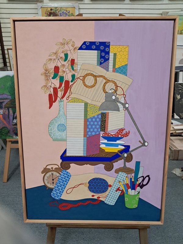 예로부터 민화는 서민들의 정서와 문화가 담긴 대중적인 그림이었다. 작가는 이러한 민화의 자유로운 발상과 표현, 그리고 행복과 행운을 기원하는 길상적인 의미에서 자신의 작업에 대한 영감을 받았다고 설명한다. 작가의 작품에는 전통적인 민화에서 보이는 달항아리나 길한 의미를 담은 물고기, 산수풍경, 가구 등이 드러나는 한편, 현대의 물건인 인형, 카페 음료, 장신구 등이 보이기도 한다. 이는 평범한 사람들이 가지고 있는 욕망과 기대 등을 전통 회화에 접목해 표현한 것으로 해석된다. 한국 전통의 정서를 현대적으로 재해석하여 오늘날의 감상자들과 공감대를 형성하는 작가의 작품은 새로운 감상 포인트이다.