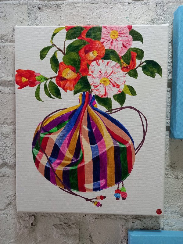 냥갱 작가의 작품은 재치 있고 귀여운 매력을 보여준다. 특히나 동백과 전통 문양 등에서 보여주는 강렬한 색채와 장식적인 측면이 인상적이다. 동물에 대한 애정과 관심, 그리고 옛 추억에 잠기는 복고풍의 매력을 느낄 수 있는 부분이다. 작가는 길고양이들을 챙겨주며 고양이들의 매력을 알고 이를 캔버스에 옮겨야겠다고 생각했다고 한다. 앞으로도 고양이나 다양한 동물들을 화려한 꽃과 고풍스러운 빈티지한 소품들로 조합해 그려나가고 싶다는 작가의 작품들이 더욱 기대된다.