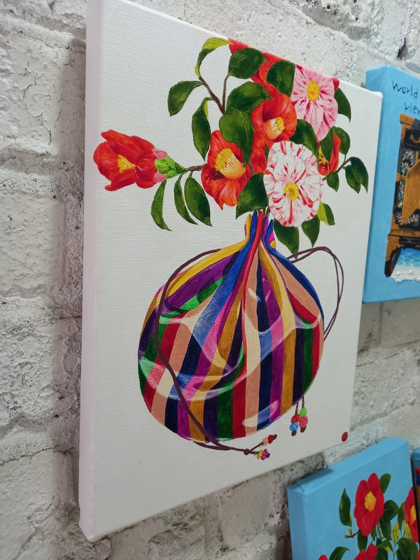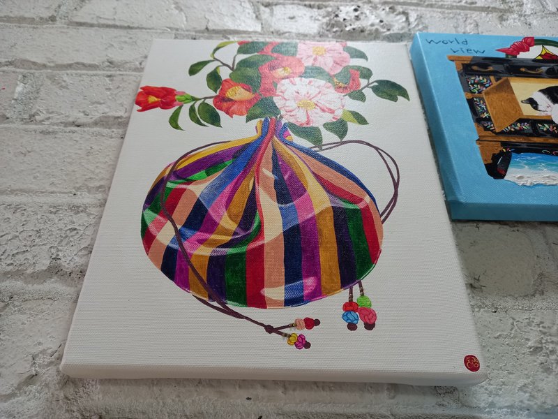 귀여운 고양이들이 화려한 꽃과 예스러운 장식 패턴에 둘러싸여 있는 모습의 그림은 복고풍의 분위기를 불러다 줍니다. 작가는 재미있고 예쁘면서 사람들의 감수성을 자극하는 작품을 제작합니다. 길고양이들을 챙겨주며 느낀 이들의 매력을 화폭에 담고 싶었다는 작가는 누구나 기분 좋게 감상할 수 있는 예쁘고 빈티지한 작품에 고양이를 그려 넣어 매력을 극대화하였습니다. 공간에 톡톡 튀는 포인트가 필요한 분들께 냥갱 작가의 작품을 적극 추천드립니다.