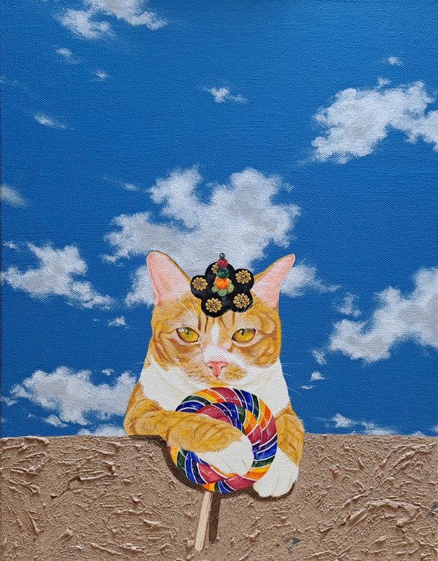귀여운 고양이들이 화려한 꽃과 예스러운 장식 패턴에 둘러싸여 있는 모습의 그림은 복고풍의 분위기를 불러다 줍니다. 작가는 재미있고 예쁘면서 사람들의 감수성을 자극하는 작품을 제작합니다. 길고양이들을 챙겨주며 느낀 이들의 매력을 화폭에 담고 싶었다는 작가는 누구나 기분 좋게 감상할 수 있는 예쁘고 빈티지한 작품에 고양이를 그려 넣어 매력을 극대화하였습니다. 공간에 톡톡 튀는 포인트가 필요한 분들께 냥갱 작가의 작품을 적극 추천드립니다.