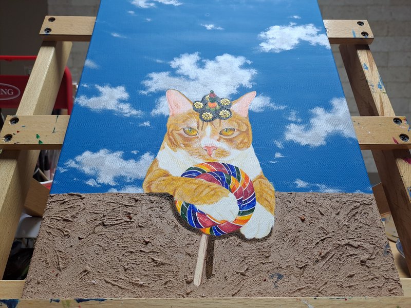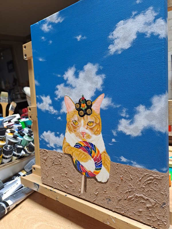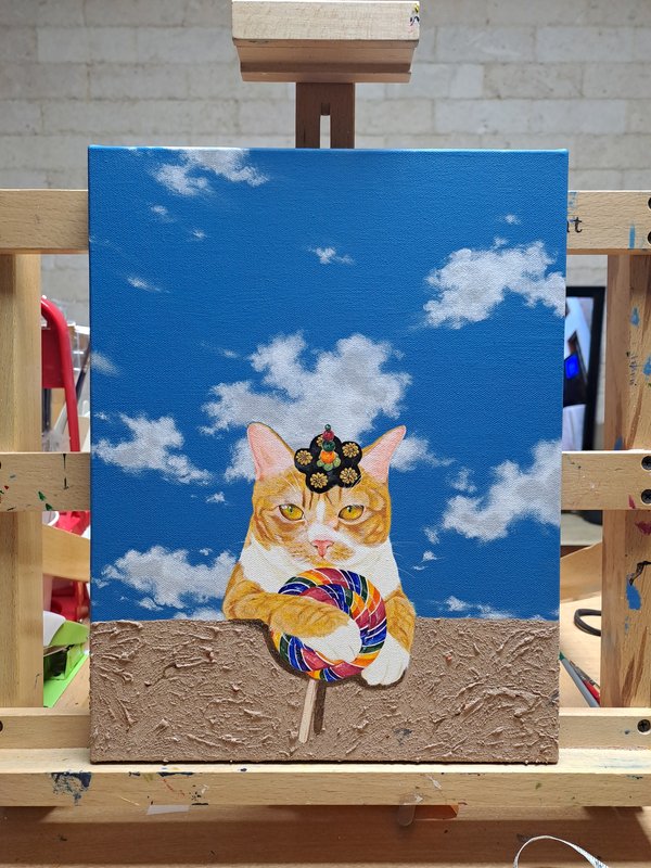 귀여운 고양이들이 화려한 꽃과 예스러운 장식 패턴에 둘러싸여 있는 모습의 그림은 복고풍의 분위기를 불러다 줍니다. 작가는 재미있고 예쁘면서 사람들의 감수성을 자극하는 작품을 제작합니다. 길고양이들을 챙겨주며 느낀 이들의 매력을 화폭에 담고 싶었다는 작가는 누구나 기분 좋게 감상할 수 있는 예쁘고 빈티지한 작품에 고양이를 그려 넣어 매력을 극대화하였습니다. 공간에 톡톡 튀는 포인트가 필요한 분들께 냥갱 작가의 작품을 적극 추천드립니다.
