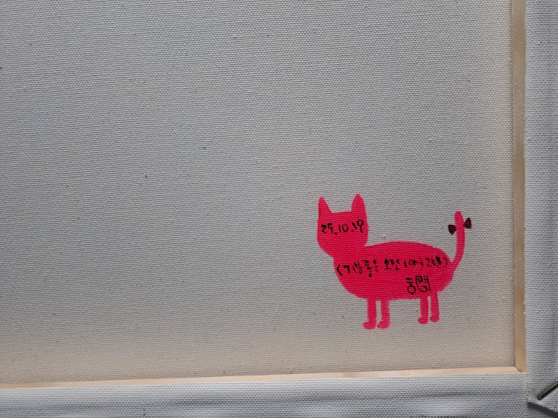 냥갱 작가의 작품은 재치 있고 귀여운 매력을 보여준다. 특히나 동백과 전통 문양 등에서 보여주는 강렬한 색채와 장식적인 측면이 인상적이다. 동물에 대한 애정과 관심, 그리고 옛 추억에 잠기는 복고풍의 매력을 느낄 수 있는 부분이다. 작가는 길고양이들을 챙겨주며 고양이들의 매력을 알고 이를 캔버스에 옮겨야겠다고 생각했다고 한다. 앞으로도 고양이나 다양한 동물들을 화려한 꽃과 고풍스러운 빈티지한 소품들로 조합해 그려나가고 싶다는 작가의 작품들이 더욱 기대된다.
