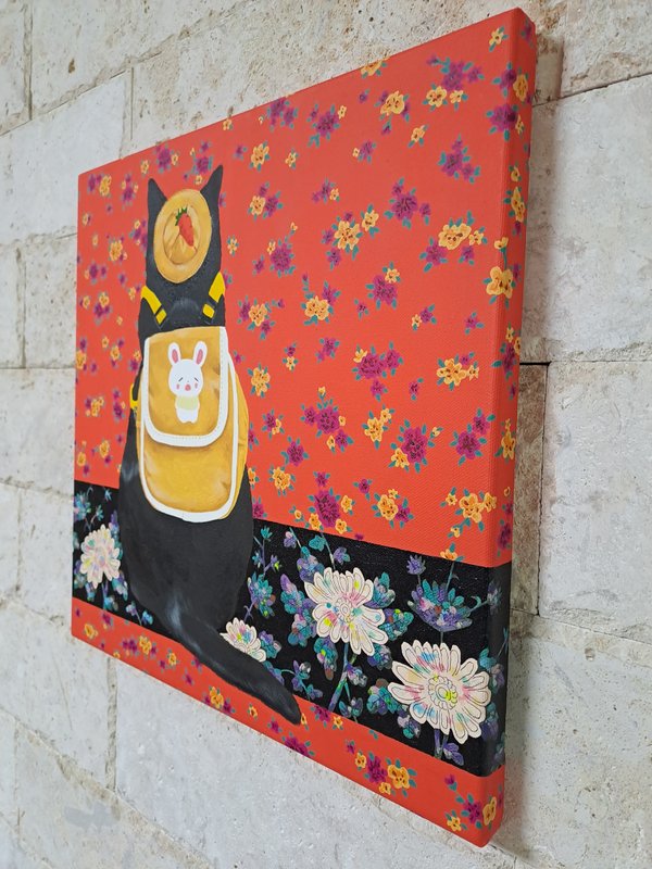 귀여운 고양이들이 화려한 꽃과 예스러운 장식 패턴에 둘러싸여 있는 모습의 그림은 복고풍의 분위기를 불러다 줍니다. 작가는 재미있고 예쁘면서 사람들의 감수성을 자극하는 작품을 제작합니다. 길고양이들을 챙겨주며 느낀 이들의 매력을 화폭에 담고 싶었다는 작가는 누구나 기분 좋게 감상할 수 있는 예쁘고 빈티지한 작품에 고양이를 그려 넣어 매력을 극대화하였습니다. 공간에 톡톡 튀는 포인트가 필요한 분들께 냥갱 작가의 작품을 적극 추천드립니다.