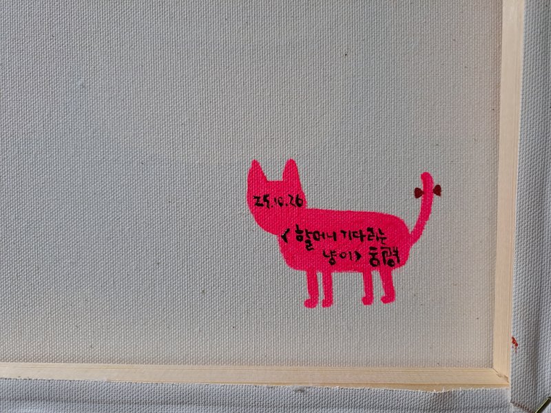 냥갱 작가의 작품은 재치 있고 귀여운 매력을 보여준다. 특히나 동백과 전통 문양 등에서 보여주는 강렬한 색채와 장식적인 측면이 인상적이다. 동물에 대한 애정과 관심, 그리고 옛 추억에 잠기는 복고풍의 매력을 느낄 수 있는 부분이다. 작가는 길고양이들을 챙겨주며 고양이들의 매력을 알고 이를 캔버스에 옮겨야겠다고 생각했다고 한다. 앞으로도 고양이나 다양한 동물들을 화려한 꽃과 고풍스러운 빈티지한 소품들로 조합해 그려나가고 싶다는 작가의 작품들이 더욱 기대된다.