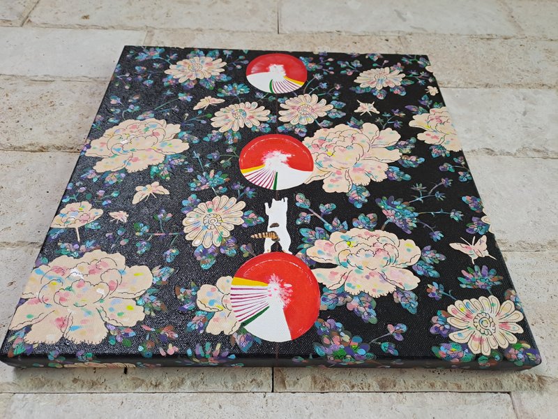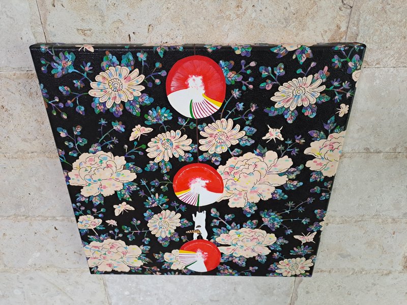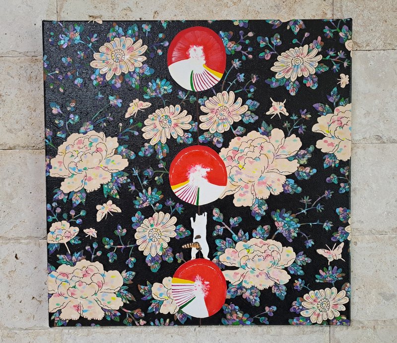귀여운 고양이들이 화려한 꽃과 예스러운 장식 패턴에 둘러싸여 있는 모습의 그림은 복고풍의 분위기를 불러다 줍니다. 작가는 재미있고 예쁘면서 사람들의 감수성을 자극하는 작품을 제작합니다. 길고양이들을 챙겨주며 느낀 이들의 매력을 화폭에 담고 싶었다는 작가는 누구나 기분 좋게 감상할 수 있는 예쁘고 빈티지한 작품에 고양이를 그려 넣어 매력을 극대화하였습니다. 공간에 톡톡 튀는 포인트가 필요한 분들께 냥갱 작가의 작품을 적극 추천드립니다.