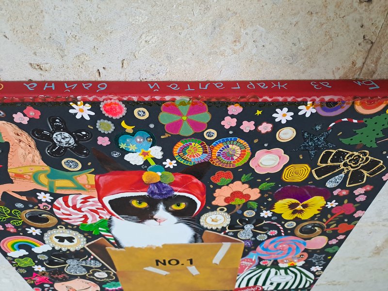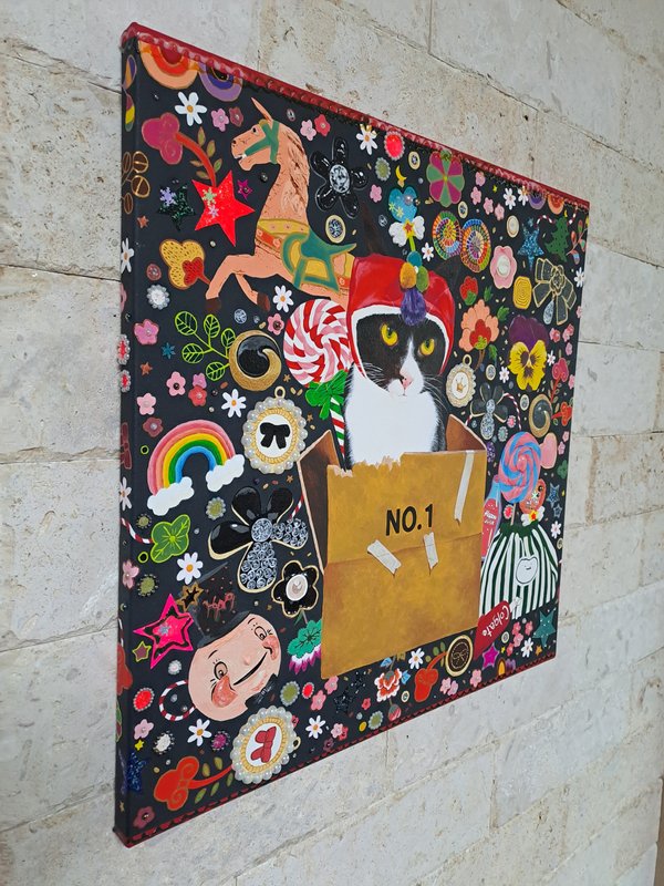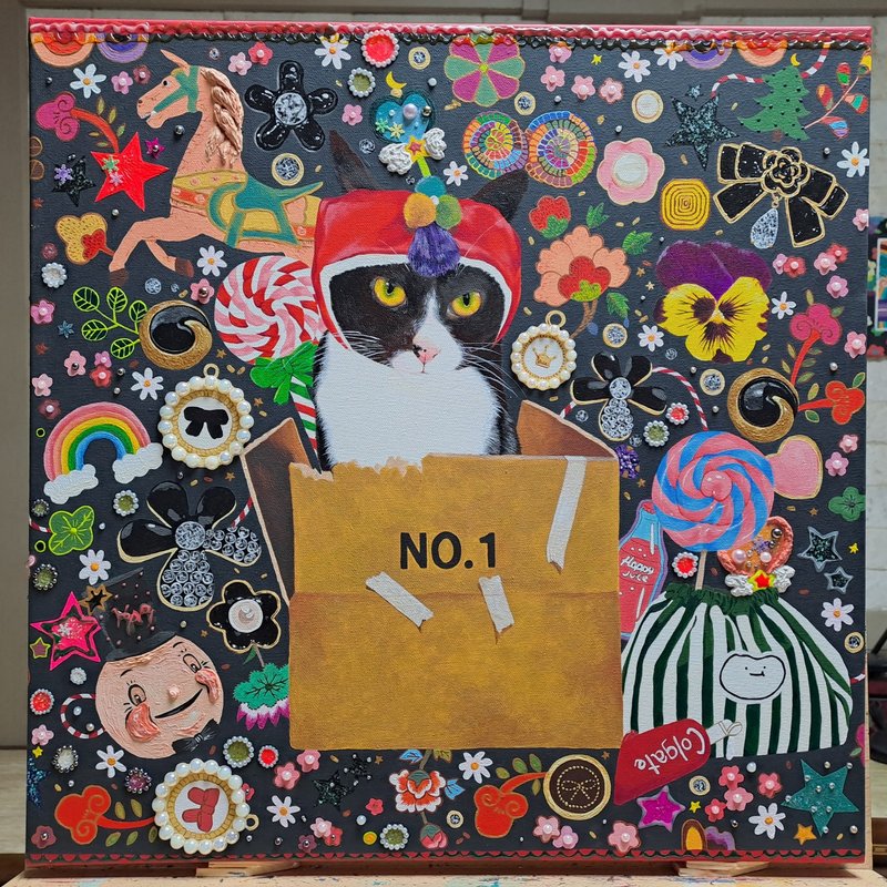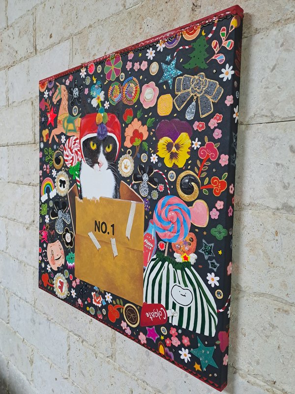 귀여운 고양이들이 화려한 꽃과 예스러운 장식 패턴에 둘러싸여 있는 모습의 그림은 복고풍의 분위기를 불러다 줍니다. 작가는 재미있고 예쁘면서 사람들의 감수성을 자극하는 작품을 제작합니다. 길고양이들을 챙겨주며 느낀 이들의 매력을 화폭에 담고 싶었다는 작가는 누구나 기분 좋게 감상할 수 있는 예쁘고 빈티지한 작품에 고양이를 그려 넣어 매력을 극대화하였습니다. 공간에 톡톡 튀는 포인트가 필요한 분들께 냥갱 작가의 작품을 적극 추천드립니다.