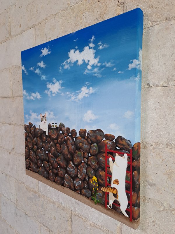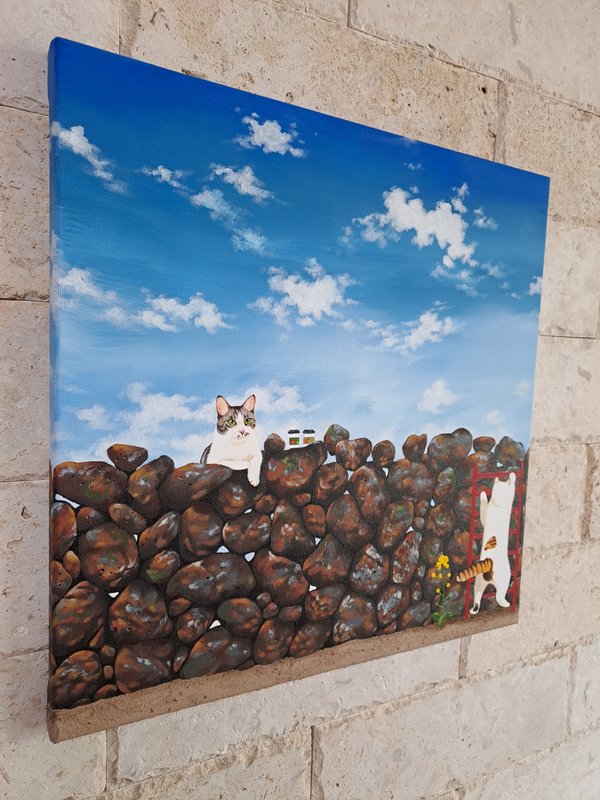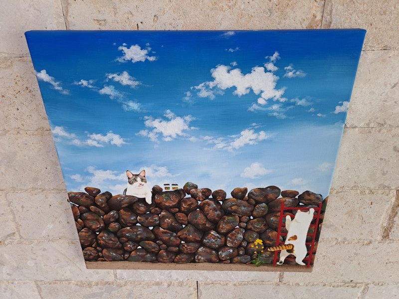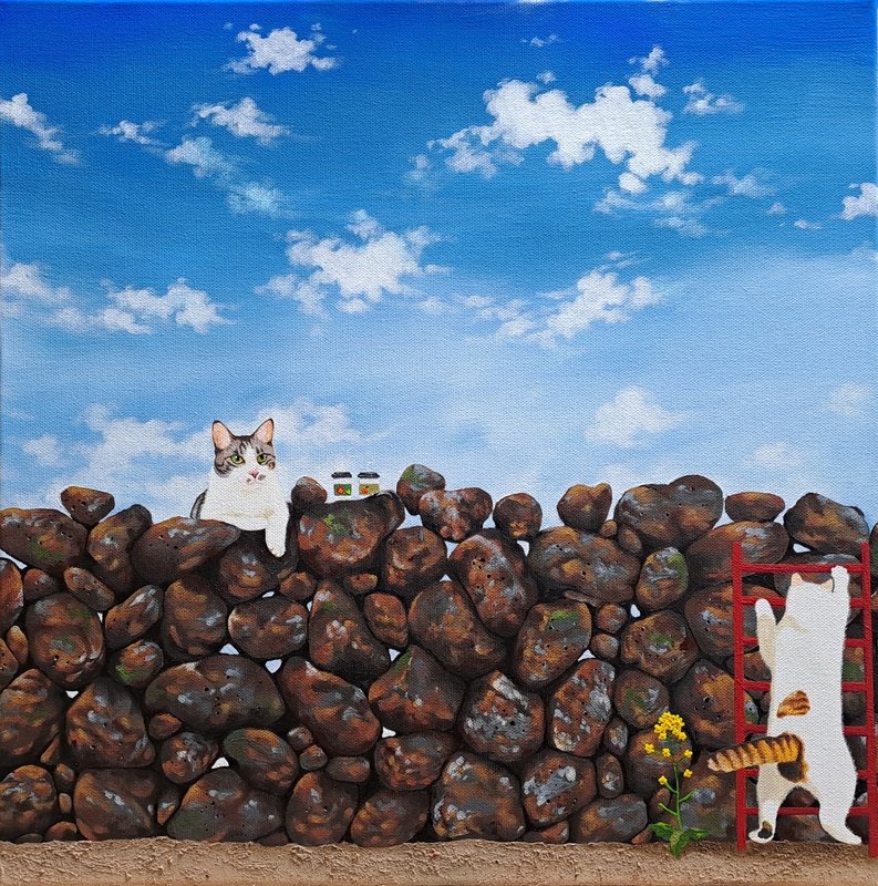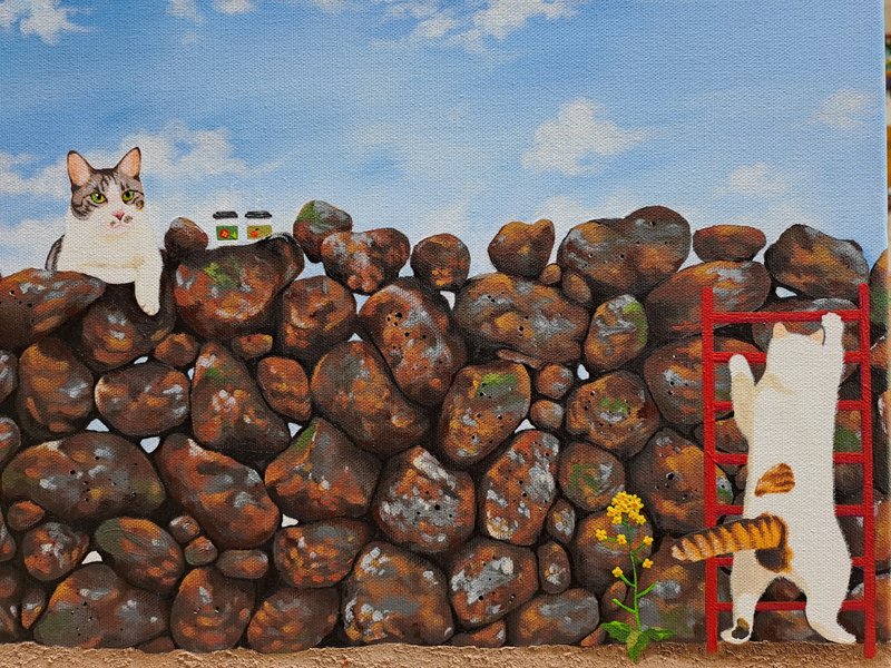 귀여운 고양이들이 화려한 꽃과 예스러운 장식 패턴에 둘러싸여 있는 모습의 그림은 복고풍의 분위기를 불러다 줍니다. 작가는 재미있고 예쁘면서 사람들의 감수성을 자극하는 작품을 제작합니다. 길고양이들을 챙겨주며 느낀 이들의 매력을 화폭에 담고 싶었다는 작가는 누구나 기분 좋게 감상할 수 있는 예쁘고 빈티지한 작품에 고양이를 그려 넣어 매력을 극대화하였습니다. 공간에 톡톡 튀는 포인트가 필요한 분들께 냥갱 작가의 작품을 적극 추천드립니다.