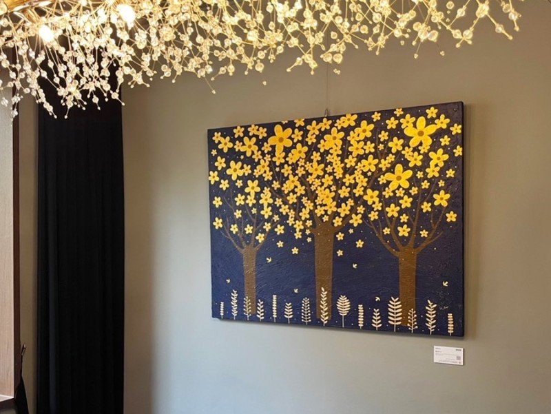 어린아이가 열심히 그린 그림 같은 느낌이 듭니다. 어린아이는 눈앞에 보여지는 겉모습에 집중하기 보다는 그 대상이 자신에게 주는 인상과 감정을 그대로 표현합니다. 작가는 화풍은 그때만의 특별한 감성을 떠올릴 수 있도록 해줍니다. 작가는 주로 노란색, 분홍색 같은 따듯하고 밝은 색을 사용해 행복함, 설렘 등의 감정을 표현합니다. 그림 속 나무들은 주변을 정화하는 힘이 있으며, 그 주변에서 사는 모든 것들 또한 그 축복을 받으니 세상은 행복함이 가득합니다. 작가의 작품은 감상자에게 기분 좋은 기운을 전달해줍니다. 유독 힘들었던 하루를 마치고 위로가 필요할 때면 그림을 바라보며 잠시 어린시절을 떠올려 보세요. 그림이 전달하는 따뜻한 격려와 위로를 느끼실 수 있습니다. 휴식과 안정을 취하는 공간에서 감상하시길 더욱 추천 드리고 싶은 작품입니다.