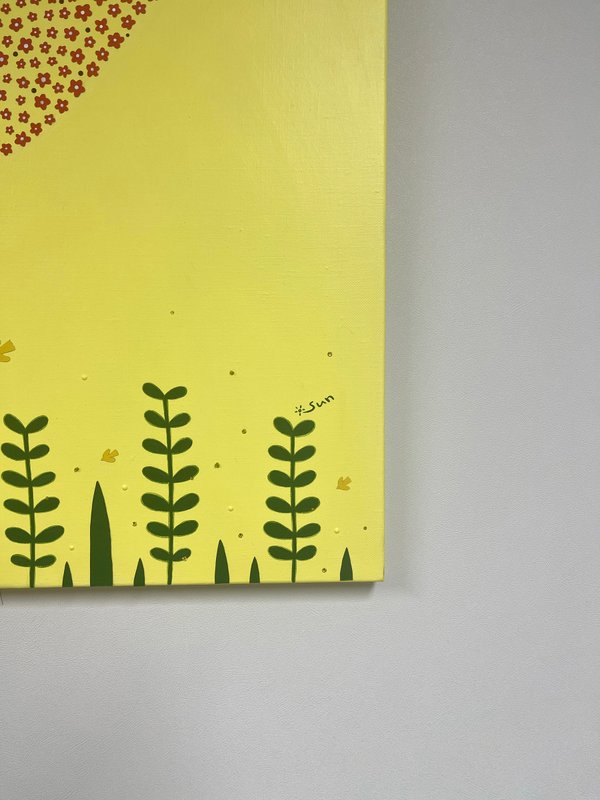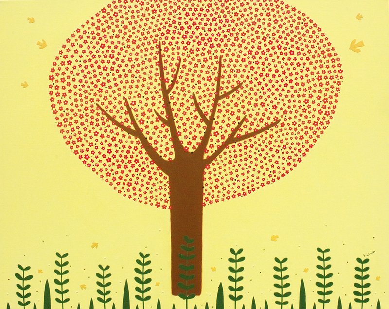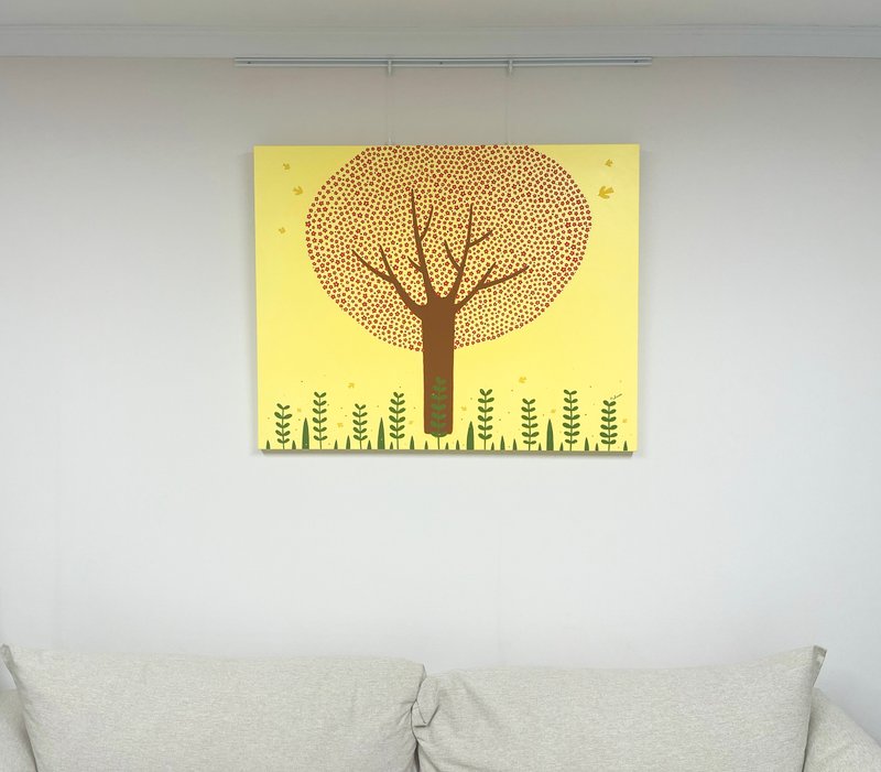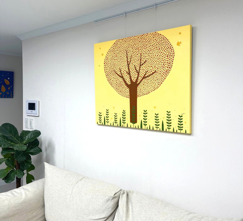 어린아이가 열심히 그린 그림 같은 느낌이 듭니다. 어린아이는 눈앞에 보여지는 겉모습에 집중하기 보다는 그 대상이 자신에게 주는 인상과 감정을 그대로 표현합니다. 작가는 화풍은 그때만의 특별한 감성을 떠올릴 수 있도록 해줍니다. 작가는 주로 노란색, 분홍색 같은 따듯하고 밝은 색을 사용해 행복함, 설렘 등의 감정을 표현합니다. 그림 속 나무들은 주변을 정화하는 힘이 있으며, 그 주변에서 사는 모든 것들 또한 그 축복을 받으니 세상은 행복함이 가득합니다. 작가의 작품은 감상자에게 기분 좋은 기운을 전달해줍니다. 유독 힘들었던 하루를 마치고 위로가 필요할 때면 그림을 바라보며 잠시 어린시절을 떠올려 보세요. 그림이 전달하는 따뜻한 격려와 위로를 느끼실 수 있습니다. 휴식과 안정을 취하는 공간에서 감상하시길 더욱 추천 드리고 싶은 작품입니다.