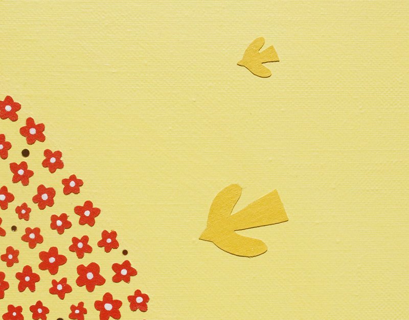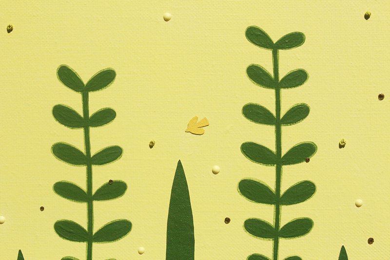 캔버스 안 가득 행복감과 동심이 느껴진다. 작가는 어린시절의 순수한 감성을 떠올리면서 느껴지는 세상을 표현한다. 아크릴로 그린 그림 위에 큐빅, 레이스, 패브릭 같은 작은 오브제들로 장식하면서 더욱 동화 같은 분위기를 연출한다. 어린아이가 느끼는 세상은 새롭고 신비로운 것들로 가득하다. 길가의 꽃, 나무, 하늘의 별, 날아가는 새 등 주변의 많은 것들로 하여금 매일매일 설렘을 느낄 수 있었다. 하지만 어른이 되어가며 그때의 감성은 서서히 흐릿해 진다. 그러나 작가는 우리가 언제든 그 때로 돌아갈 수 있다고 말한다. 시간은 빠르게 흘러가고 우리는 훌쩍 커버렸지만 어린시절 나를 설레게 했던 그것들은 여전히 곁에 남아있다. 잠시 어린시절을 회상해보며 그때의 감정을 느껴본다면 아름다운 이 세상에 계속 존재하고 있음에 감사함과 행복함을 느껴볼 수 있다.