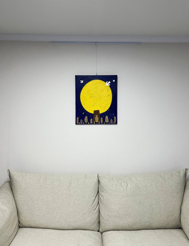 어린아이가 열심히 그린 그림 같은 느낌이 듭니다. 어린아이는 눈앞에 보여지는 겉모습에 집중하기 보다는 그 대상이 자신에게 주는 인상과 감정을 그대로 표현합니다. 작가는 화풍은 그때만의 특별한 감성을 떠올릴 수 있도록 해줍니다. 작가는 주로 노란색, 분홍색 같은 따듯하고 밝은 색을 사용해 행복함, 설렘 등의 감정을 표현합니다. 그림 속 나무들은 주변을 정화하는 힘이 있으며, 그 주변에서 사는 모든 것들 또한 그 축복을 받으니 세상은 행복함이 가득합니다. 작가의 작품은 감상자에게 기분 좋은 기운을 전달해줍니다. 유독 힘들었던 하루를 마치고 위로가 필요할 때면 그림을 바라보며 잠시 어린시절을 떠올려 보세요. 그림이 전달하는 따뜻한 격려와 위로를 느끼실 수 있습니다. 휴식과 안정을 취하는 공간에서 감상하시길 더욱 추천 드리고 싶은 작품입니다.