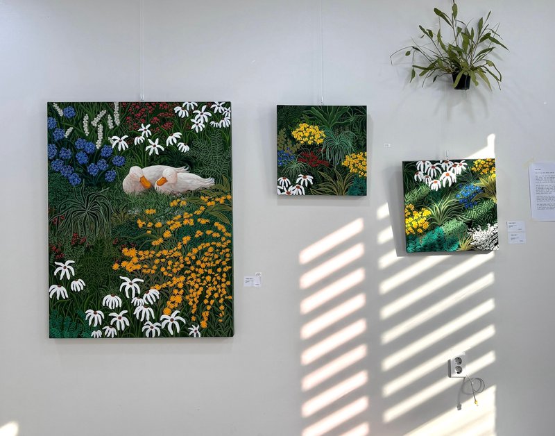자연의 아름다움은 누구나 쉽게 느끼고 인지할 수 있지만, 그 감정을 느끼는 순간을 포착하여 타인에게 전달하는 것은 그리 쉽지만은 않습니다. 송은지 작가는 자연 속에서 치유하고 희망을 얻는 순간에 집중하여 그것을 화폭에 담아냅니다. 다시 말해서 작가는 자연과 자신이 만나는 순간의 그 경험을 시각적으로 표현하고 있는데요, 자연 풍경을 재현하여 긍정적인 에너지를 전달하는 것이 송은지 작가의 특징입니다. 그의 그림에서는 새파란 하늘이나 바다, 녹음 진 나무들이나 푸른 들판이 등장합니다. 자연 속에 있는 집, 행복하고 여유로운 순간을 만끽하는 동물들의 모습은 보기 편안한 장면을 연출하고 감상자 역시 마음을 놓고 편히 바라보게 됩니다. 바쁜 일상에서 송은지 작가의 작품을 마주하며 힐링 타임을 가져보시면 어떨까요?