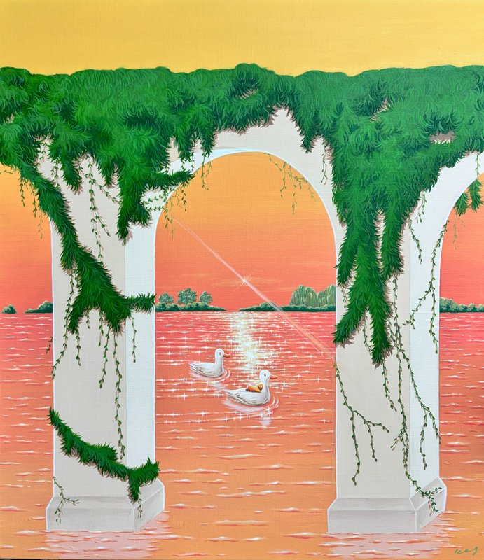 자연의 아름다움은 누구나 쉽게 느끼고 인지할 수 있지만, 그 감정을 느끼는 순간을 포착하여 타인에게 전달하는 것은 그리 쉽지만은 않습니다. 송은지 작가는 자연 속에서 치유하고 희망을 얻는 순간에 집중하여 그것을 화폭에 담아냅니다. 다시 말해서 작가는 자연과 자신이 만나는 순간의 그 경험을 시각적으로 표현하고 있는데요, 자연 풍경을 재현하여 긍정적인 에너지를 전달하는 것이 송은지 작가의 특징입니다. 그의 그림에서는 새파란 하늘이나 바다, 녹음 진 나무들이나 푸른 들판이 등장합니다. 자연 속에 있는 집, 행복하고 여유로운 순간을 만끽하는 동물들의 모습은 보기 편안한 장면을 연출하고 감상자 역시 마음을 놓고 편히 바라보게 됩니다. 바쁜 일상에서 송은지 작가의 작품을 마주하며 힐링 타임을 가져보시면 어떨까요?