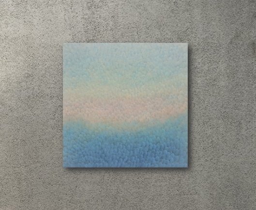 작가에게 작업이란 내면의 불안감을 해소하고 신체적 결함을 극복하는 일련의 수행과도 같습니다. 작업의 주된 키워드는 ’반복 과몰입‘으로, 작업에 몰입하는 순간 무아지경의 상태에 빠지게 되고 곧 무수한 선들로 가득 찬 알 수 없는 세계가 등장합니다. 이 세계는 타인과는 다르게 세상을 바라볼 수밖에 없는 작가 자신을 나타낼 것입니다. 시각의 불안정함은 자신이 바라보는 세상을 똑바로 해석할 수 없기에 심리적인 위태로움을 느끼게 할 것입니다. 하지만 작가는 이를 극복하여 작품으로 승화시켰으며 이러한 행위는 예술이란 결함조차도 특별함으로 바꿀 수 있는 영역임을 보여줍니다. 따라서 결과물뿐 아니라 그 안에 담긴 과정 자체에 높은 가치가 부여되는 작품입니다. 그림이 갖는 차분하고 신비로운 분위기는 명상 또는 업무와 같이 고요한 집중력을 요구하는 공간과 더욱 잘 어우러질 것으로 생각됩니다.