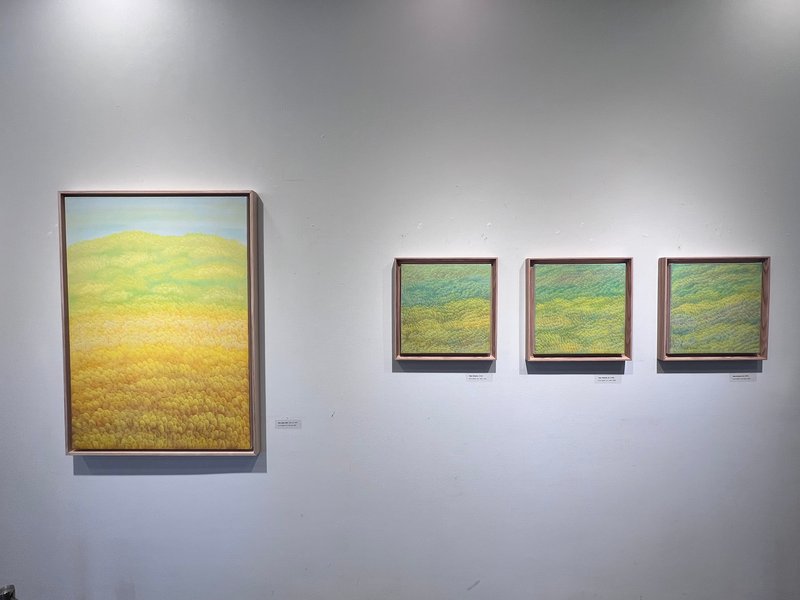 작가에게 작업이란 내면의 불안감을 해소하고 신체적 결함을 극복하는 일련의 수행과도 같습니다. 작업의 주된 키워드는 ’반복 과몰입‘으로, 작업에 몰입하는 순간 무아지경의 상태에 빠지게 되고 곧 무수한 선들로 가득 찬 알 수 없는 세계가 등장합니다. 이 세계는 타인과는 다르게 세상을 바라볼 수밖에 없는 작가 자신을 나타낼 것입니다. 시각의 불안정함은 자신이 바라보는 세상을 똑바로 해석할 수 없기에 심리적인 위태로움을 느끼게 할 것입니다. 하지만 작가는 이를 극복하여 작품으로 승화시켰으며 이러한 행위는 예술이란 결함조차도 특별함으로 바꿀 수 있는 영역임을 보여줍니다. 따라서 결과물뿐 아니라 그 안에 담긴 과정 자체에 높은 가치가 부여되는 작품입니다. 그림이 갖는 차분하고 신비로운 분위기는 명상 또는 업무와 같이 고요한 집중력을 요구하는 공간과 더욱 잘 어우러질 것으로 생각됩니다.
