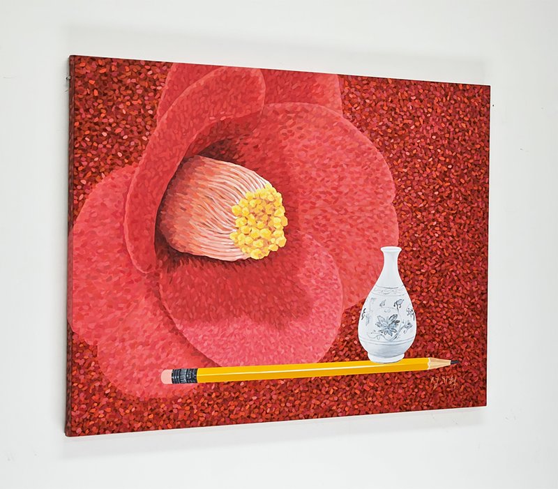 작품을 감상할 때, 가까이서 보는 것과 멀리서 보는 것의 차이를 아는 것은 중요합니다. 성기혁 작가의 작품에 가까이 다가가 유심히 살펴보면 한 송이 한 송이 활짝 핀 꽃을 볼 수 있습니다. 하지만, 한 걸음 물러나서 전체 화면 감상하면 화면을 가득 메운 꽃잎이 하나의 풍경을 이루고 있음을 알 수 있습니다. 이러한 효과만 보며 성기혁 작가의 작품을 섣불리 점묘화로 칭할 수는 없습니다. 작가는 다양한 색채를 활용하여 나무나 산의 형태가 두드러지게 표현하고 이를 통해 궁극적으로는 하나의 풍경을 묘사하기 때문입니다. 그림의 구석구석을 유심히 살피다 보면 붓 자국 하나하나, 꽃잎 하나하나의 특색을 찾아볼 수 있습니다. 가까이서, 또 멀리서 성기혁 작가의 작품을 감상하며 자연의 모습을 즐겨보시길 추천해 드립니다.