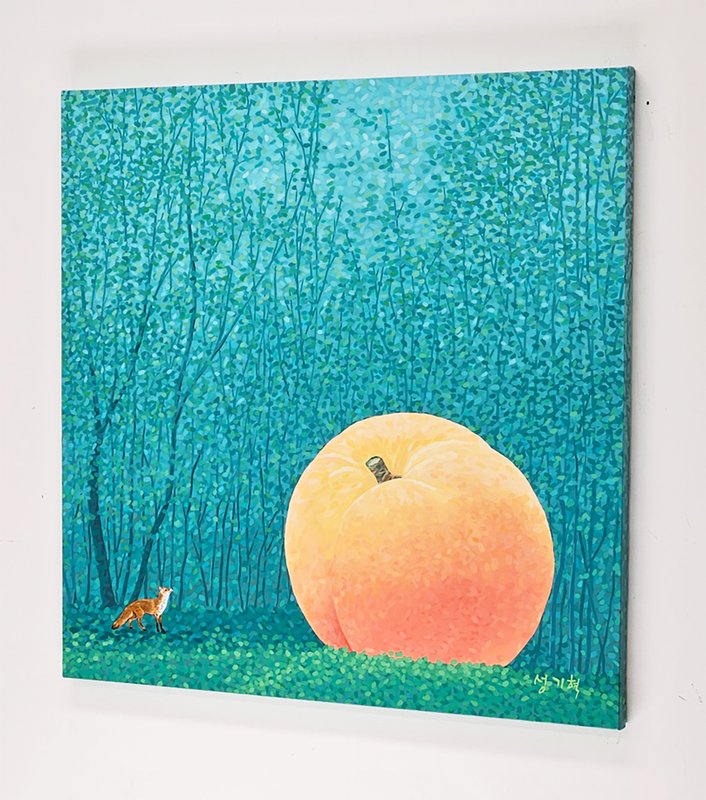 성기혁 작가의 작품 속에는 꽃잎이 가득하다. 점묘화인 듯 이리저리 붓 자국과 점으로 이루어진 듯한 작품 속 풍경을 통해 감상자는 색채로 화면이 이루어진다는 것을 알게 된다. 조화롭게 어우러지는 색채의 점들은 조화롭게 화면을 메우고 물체들은 각각의 형태를 띤다. 나무가 우거진 숲, 저 멀리 산등성이가 보이는 풍경, 꽃이 흐드러지게 핀 나무의 모습은 작가가 직시한 풍경을 재현한 것이겠지만, 작가는 이를 색채로 각각의 형태를 갖추게 묘사하며 하나의 상상화를 완성한 것이다. 현실에서는 마주할 수 없는 풍경이지만, 관람자는 거리를 두고 성기혁 작가의 화면을 보며 자연 풍경을 떠올리게 된다. 색채만으로 풍경을 묘사하고 관람자의 상상을 자극하는 것은 성기혁 작가의 특기이다. 그 때문에 꽃으로 화면을 가득 채운 작가의 그림에서 관람자는 익숙한 풍경을 찾는다.
