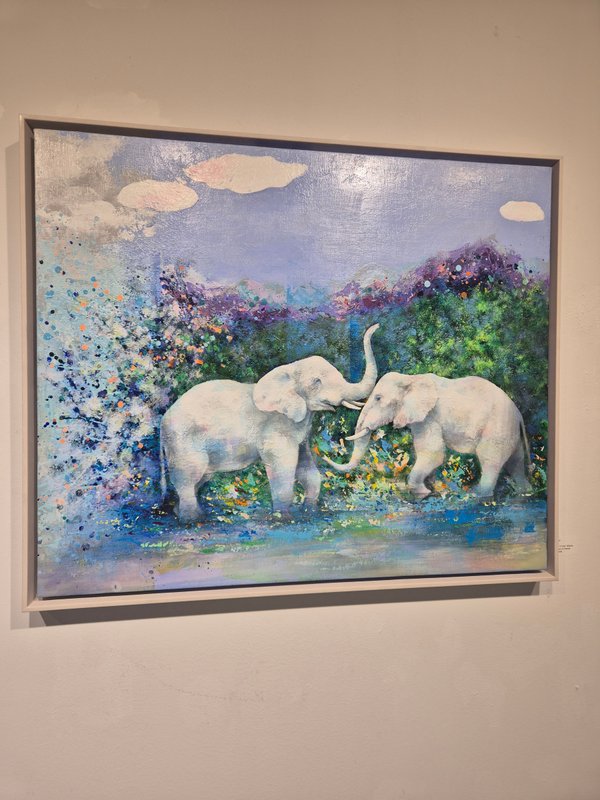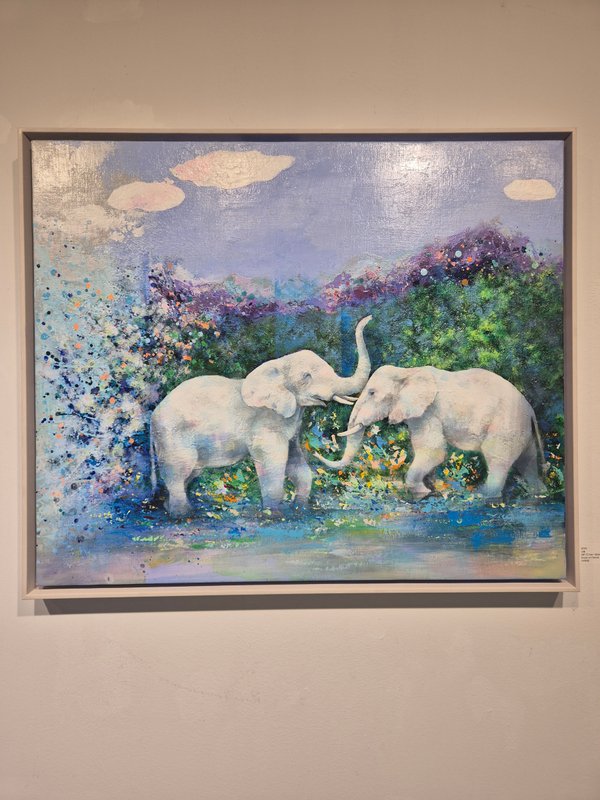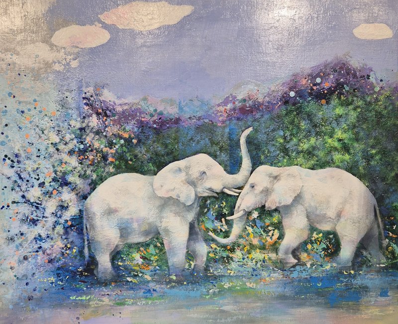 코끼리는 높은 지능을 가졌으며 사회성 또한 높습니다. 이러한 특징은 인간과 비슷하기에 코끼리는 우리에게 친근한 동물로 여겨져 왔습니다. 작가가 코끼리를 작품의 주 소재로 선택한 이유는 자연과 인간 사이의 교집합에 속해 있기 때문일 것입니다. 작품 속 코끼리는 자연과 인간을 이어주는 다리의 역할을 수행하고 있습니다. 작가는 다양한 구성과 색감의 변화를 통해 코끼리의 강함 또는 선함을 자유롭게 표현했습니다. 따라서 작품에 따라 강렬하고 선명한 공간 또는 부드러운 분위기의 공간을 연출해 보실 수 있습니다. 코끼리의 선한 기운은 감상자에게 힘을 건네주며 공간 가득 자연의 신비로운 에너지를 채워줄 것입니다.