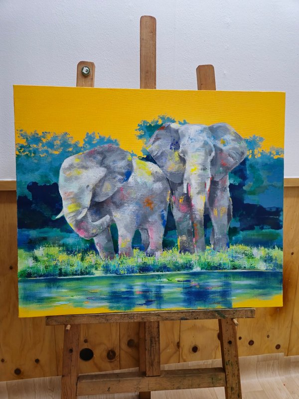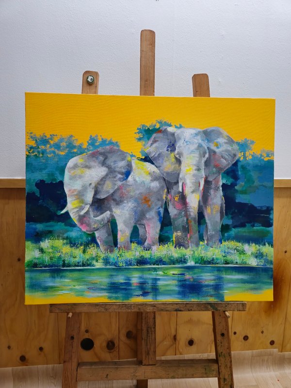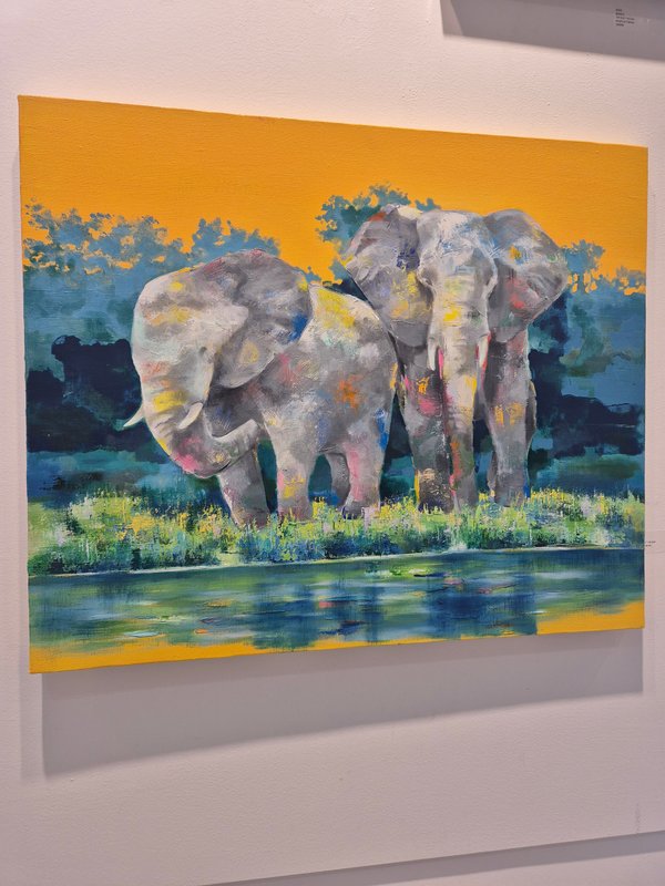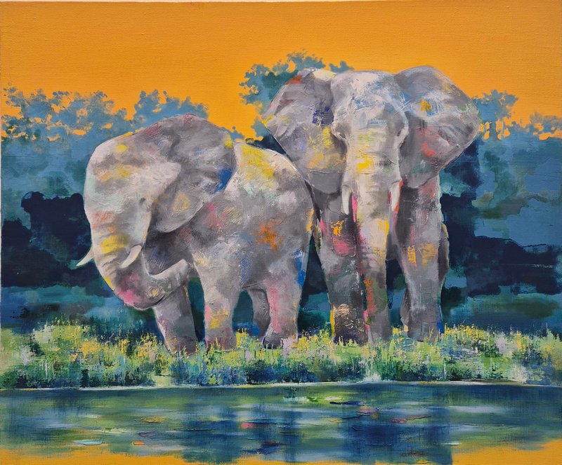 코끼리는 높은 지능을 가졌으며 사회성 또한 높습니다. 이러한 특징은 인간과 비슷하기에 코끼리는 우리에게 친근한 동물로 여겨져 왔습니다. 작가가 코끼리를 작품의 주 소재로 선택한 이유는 자연과 인간 사이의 교집합에 속해 있기 때문일 것입니다. 작품 속 코끼리는 자연과 인간을 이어주는 다리의 역할을 수행하고 있습니다. 작가는 다양한 구성과 색감의 변화를 통해 코끼리의 강함 또는 선함을 자유롭게 표현했습니다. 따라서 작품에 따라 강렬하고 선명한 공간 또는 부드러운 분위기의 공간을 연출해 보실 수 있습니다. 코끼리의 선한 기운은 감상자에게 힘을 건네주며 공간 가득 자연의 신비로운 에너지를 채워줄 것입니다.