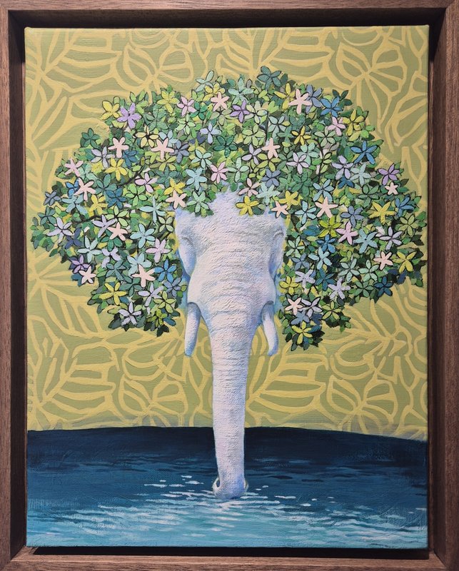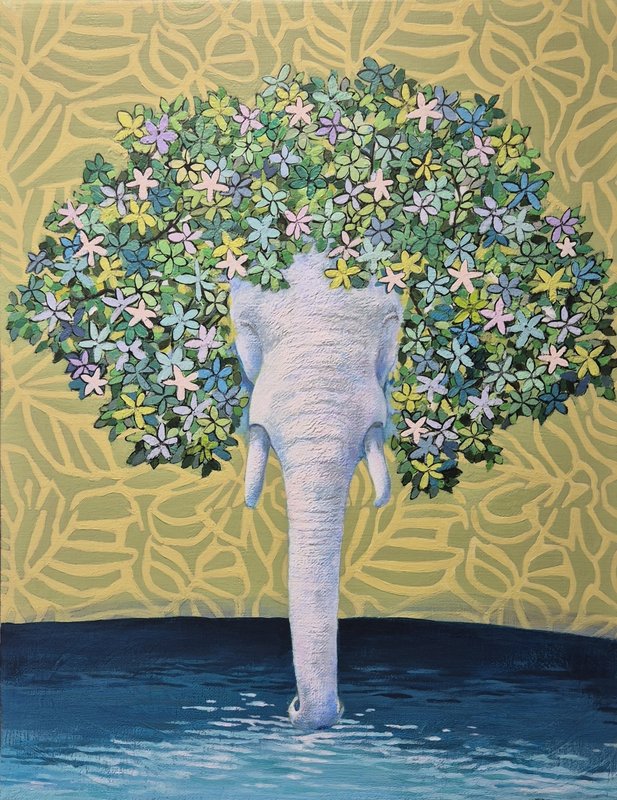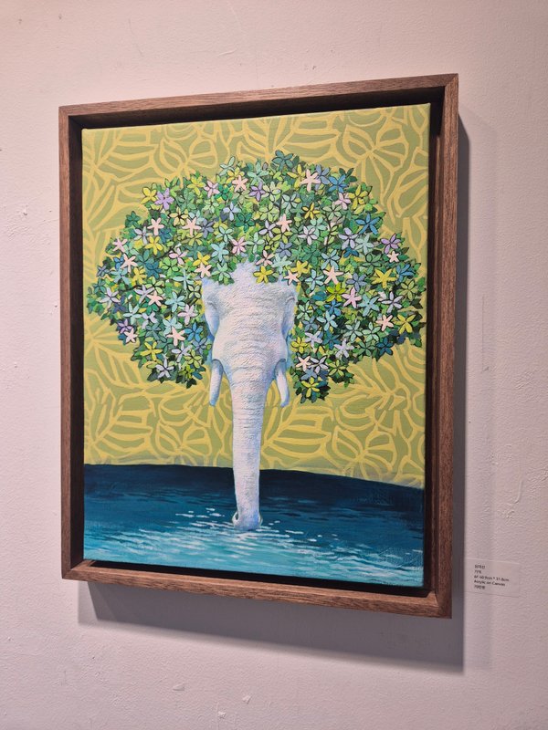 코끼리는 높은 지능을 가졌으며 사회성 또한 높습니다. 이러한 특징은 인간과 비슷하기에 코끼리는 우리에게 친근한 동물로 여겨져 왔습니다. 작가가 코끼리를 작품의 주 소재로 선택한 이유는 자연과 인간 사이의 교집합에 속해 있기 때문일 것입니다. 작품 속 코끼리는 자연과 인간을 이어주는 다리의 역할을 수행하고 있습니다. 작가는 다양한 구성과 색감의 변화를 통해 코끼리의 강함 또는 선함을 자유롭게 표현했습니다. 따라서 작품에 따라 강렬하고 선명한 공간 또는 부드러운 분위기의 공간을 연출해 보실 수 있습니다. 코끼리의 선한 기운은 감상자에게 힘을 건네주며 공간 가득 자연의 신비로운 에너지를 채워줄 것입니다.