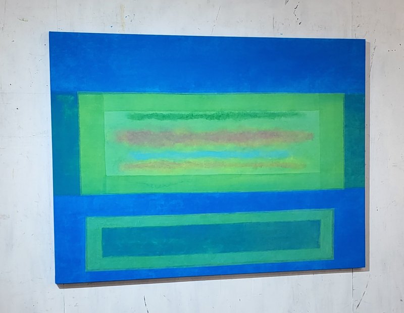 자유를 어떻게 정의할 수 있을까요? 소휘 작가는 현대인들이 현실에 매여 스스로를 한계 짓는 것에서 벗어나 꿈을 꾸는 것이 자유라고 정의합니다. 작가는 이 자유에서 도달할 수 있는 곳을 노스탤지어와 유토피아라고 보며 자신이 행복했던 시간을 보낸 제주도를 기억하고 또 꿈꾸며 반짝이는 순간들을 캔버스에 담아냅니다. 소휘 작가의 화면에서 자주 등장하는 사각형은 딱딱하고 정형적이라는 특징을 지니고 있지만, 작가는 따뜻하고 투명한 색채를 사용하여 편히 감상할 수 있는 이미지를 완성하였습니다. 몽환적이고 환상적인 분위기까지 연출하는 화면은 마치 동화 속 한 장면의 순간이나 행복했던 기억들이 모여 만들어내는 빛을 시각화한 것처럼 느껴지기도 합니다. 소휘 작가의 그림을 감상하며 나의 반짝이는 순간들과 하루를 꿈꾸고 완성해가면 어떨까요?