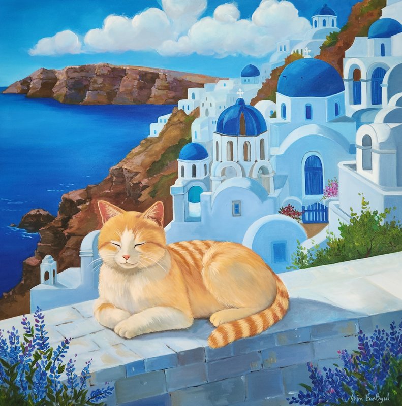심은별 작가의 작품 철학은 <힐링과 행복>이다. 작가는 고양이를 의인화하여 사람들의 일상을 그려 나간다. 일상에서 자주 접하는 브랜드나 유명한 캐릭터의 이미지가 사용되어 친근하게 느껴진다. 고양잇과에 속하는 동물들은 얼굴 근육이 덜 발달하여 표정이 다양하지 않다. 인간의 기준에서 얼굴은 상대의 감정을 파악할 수 있는 주요 부위이기에 고양이의 무표정한 얼굴을 보며 무뚝뚝하고 까칠하다며 오해하곤 한다. 하지만 그림 속 고양이들은 입꼬리가 슬며시 올라가 있고 눈에서 즐거움, 행복함, 자신감 등의 감정들이 느껴지기에 어딘가 이질적이면서도 눈을 뗄 수 없는 매력이 있다. 속을 알 수 없는 고양이가 생각하지 못한 모습으로 등장하여 더욱 익살스럽고 독특하게 느껴진다. 사랑스러운 그림은 감상자의 마음을 녹여주며 행복함을 가득 채워준다.