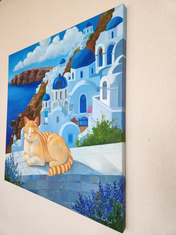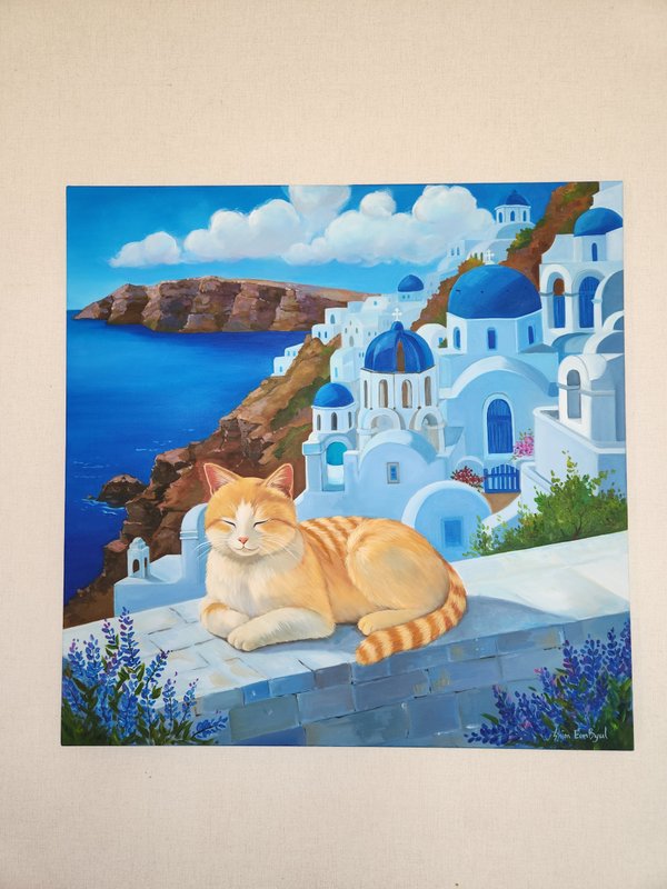 귀여운 고양이와 작가의 개성 있는 상상력이 만나 감상자의 감각을 즐겁게 해줍니다. 동물의 털이나 옷의 질감을 잘 표현하는 것은 높은 집중력이 있어야 하는 작업입니다. 그림 속 세밀한 묘사에서 작가의 꼼꼼함이 느껴집니다. 작품을 바라보며 어떤 캐릭터나 브랜드가 표현되었는지 찾아보는 묘미를 느껴보실 수 있습니다. 또한 작품마다 조금씩 다른 고양이들의 표정은 하나의 감상 포인트가 됩니다. 고양이 특유의 여유로운 성격은 작품의 분위기를 부드럽게 만들어줍니다. 밝은 색채와 유쾌한 장면들은 보기만 해도 미소가 절로 지어집니다. 일상에 지쳐 마음의 치유가 필요한 순간 그림을 바라보며 고양이들이 슬며시 건네는 응원을 받아보시길 바랍니다.