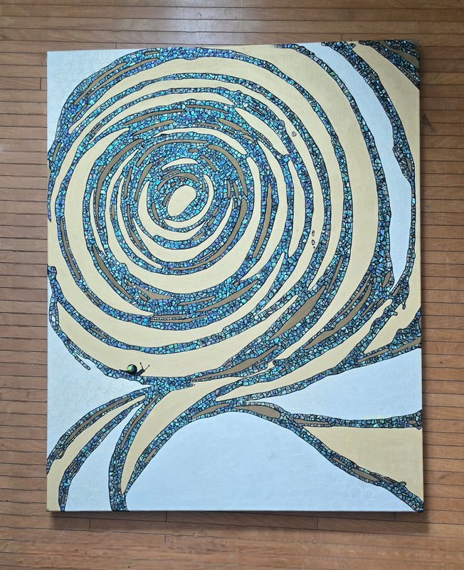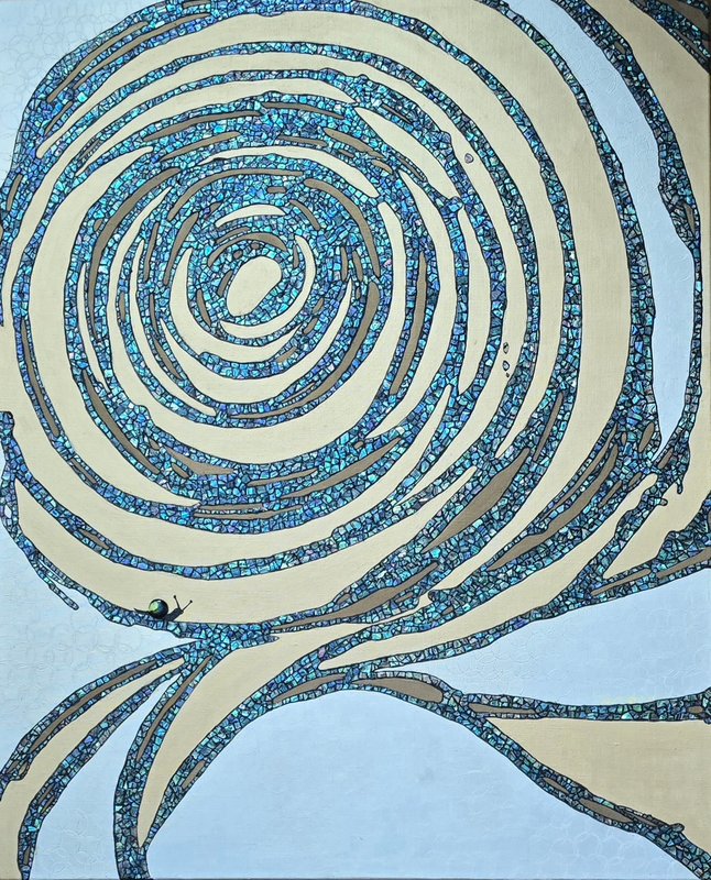 작품 속에는 삶의 이야기가 담겨있다. 존재하는 모든 것들은 사랑이 남긴 흔적이라는 생각으로부터 작업은 시작된다. 작가는 시간의 흐름에 맞춰 천천히 작업을 진행해 가며 그 과정에서 삶의 의미를 탐구한다. 작업은 유화를 사용한 드로잉 기법이 주를 이룬다. 작품의 소재는 사람들에게 활력을 주는 자연의 요소들이다. 거대한 산, 새, 파도 등 이들의 형상을 조금씩 변형하여 작가만의 스타일로 재구성한다. 유화 외에 사용된 먹, 자개, 레진 등의 다양한 재료들은 감상자의 눈을 즐겁게 해주는 감상 포인트가 되며, 작품에 깊이감을 주는 요소로 작용하고 있다. 작가는 아무리 굴곡진 삶이라도 그 끝은 희망적이며 아름다움이 생성된다는 믿음을 감상자에게 전하고자 한다.