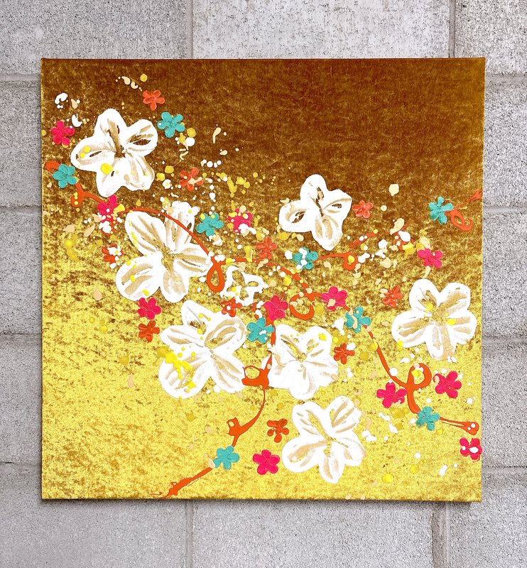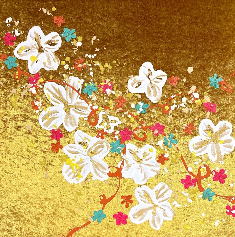 평범한 날이더라도 꽃을 선물 받으면 그 하루는 특별해집니다. 작가는 사람들이 꽃이라는 매개체를 통해 서로의 마음을 전달하는 행위에서 작업의 영감을 얻습니다. 우리에게 익숙한 상징적인 꽃 중 하나로 해바라기가 있습니다. 해바라기가 그려진 작품은 행운, 길상을 의미합니다. 작가의 어사화 또한 해바라기와 같은 역할을 합니다. 작가는 어사화가 사람들에게 좋은 기운과 에너지를 줄 수 있다고 믿으며 이 마음을 작업에 녹여냅니다. 어사화를 하사했던 왕은 흩날리는 꽃잎처럼 세상에 이름을 알리라는 뜻을 담았을 것입니다. 감상자의 성공과 행복을 기원하는 그림은 공간에 긍정적인 기운을 가득 채워줄 것입니다. 꽃다발처럼 화사한 그림을 통해 선물 같은 하루를 보내시길 바랍니다.