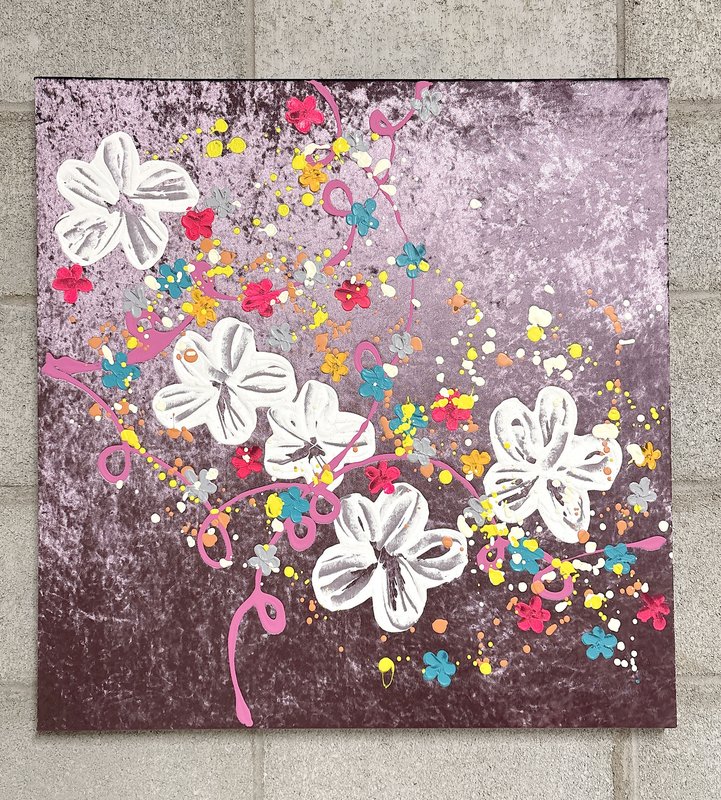 작업의 주요 소재는 어사화이다. 어사화(御賜花)는 왕이 하사한 꽃이라는 의미가 있다. 이 꽃은 관직에 오른 신하에게 하사하는 선물로 성공과 출세를 상징한다. 꽃은 저마다 다른 뜻이 있기 때문에 축하, 애도, 기념 등 다양한 상황에 쓰인다. 꽃은 지속력이 아주 짧다는 특징을 갖는다. 꺾는 순간부터 생명은 빠르게 저물어 간다. 작가는 짧은 수명을 가진 꽃들의 향연을 오래도록 함께 하고 싶은 바람을 담아 그림을 그린다. ‘지속성’에 초점을 맞추었기 때문에, 종이나 한지와 같이 상대적으로 훼손되기 쉬운 재료 대신 나무패널과 벨벳을 작품의 주재료로 선택했다. 벨벳은 흡수력이 좋고 짜임이 단단하여 오랜 시간 퇴색되지 않는다는 장점이 있다. 또한 벨벳 특유의 부드러움은 작품을 더욱 고급스럽게 만들어준다. 어사화라는 동양적 소재가 서양화 재료들과 만나 감상자로 하여금 더욱 호기심을 불러일으킨다.