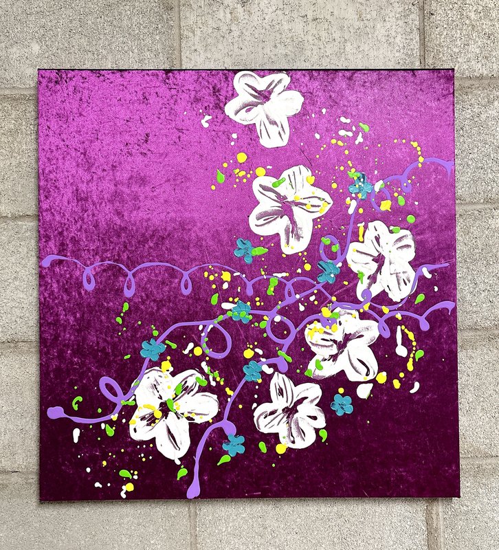 작업의 주요 소재는 어사화이다. 어사화(御賜花)는 왕이 하사한 꽃이라는 의미가 있다. 이 꽃은 관직에 오른 신하에게 하사하는 선물로 성공과 출세를 상징한다. 꽃은 저마다 다른 뜻이 있기 때문에 축하, 애도, 기념 등 다양한 상황에 쓰인다. 꽃은 지속력이 아주 짧다는 특징을 갖는다. 꺾는 순간부터 생명은 빠르게 저물어 간다. 작가는 짧은 수명을 가진 꽃들의 향연을 오래도록 함께 하고 싶은 바람을 담아 그림을 그린다. ‘지속성’에 초점을 맞추었기 때문에, 종이나 한지와 같이 상대적으로 훼손되기 쉬운 재료 대신 나무패널과 벨벳을 작품의 주재료로 선택했다. 벨벳은 흡수력이 좋고 짜임이 단단하여 오랜 시간 퇴색되지 않는다는 장점이 있다. 또한 벨벳 특유의 부드러움은 작품을 더욱 고급스럽게 만들어준다. 어사화라는 동양적 소재가 서양화 재료들과 만나 감상자로 하여금 더욱 호기심을 불러일으킨다.