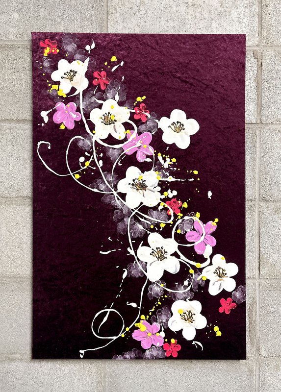 작업의 주요 소재는 어사화이다. 어사화(御賜花)는 왕이 하사한 꽃이라는 의미가 있다. 이 꽃은 관직에 오른 신하에게 하사하는 선물로 성공과 출세를 상징한다. 꽃은 저마다 다른 뜻이 있기 때문에 축하, 애도, 기념 등 다양한 상황에 쓰인다. 꽃은 지속력이 아주 짧다는 특징을 갖는다. 꺾는 순간부터 생명은 빠르게 저물어 간다. 작가는 짧은 수명을 가진 꽃들의 향연을 오래도록 함께 하고 싶은 바람을 담아 그림을 그린다. ‘지속성’에 초점을 맞추었기 때문에, 종이나 한지와 같이 상대적으로 훼손되기 쉬운 재료 대신 나무패널과 벨벳을 작품의 주재료로 선택했다. 벨벳은 흡수력이 좋고 짜임이 단단하여 오랜 시간 퇴색되지 않는다는 장점이 있다. 또한 벨벳 특유의 부드러움은 작품을 더욱 고급스럽게 만들어준다. 어사화라는 동양적 소재가 서양화 재료들과 만나 감상자로 하여금 더욱 호기심을 불러일으킨다.