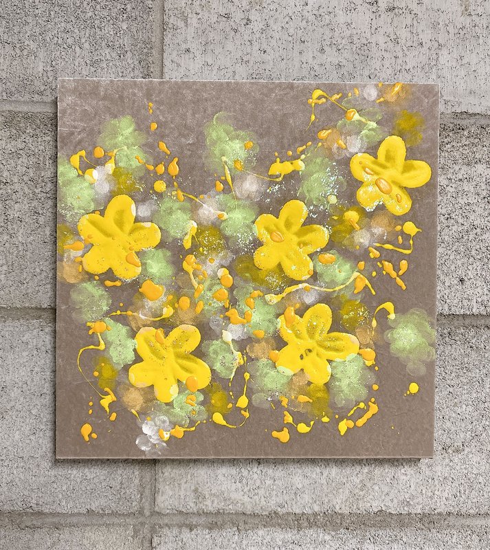 평범한 날이더라도 꽃을 선물 받으면 그 하루는 특별해집니다. 작가는 사람들이 꽃이라는 매개체를 통해 서로의 마음을 전달하는 행위에서 작업의 영감을 얻습니다. 우리에게 익숙한 상징적인 꽃 중 하나로 해바라기가 있습니다. 해바라기가 그려진 작품은 행운, 길상을 의미합니다. 작가의 어사화 또한 해바라기와 같은 역할을 합니다. 작가는 어사화가 사람들에게 좋은 기운과 에너지를 줄 수 있다고 믿으며 이 마음을 작업에 녹여냅니다. 어사화를 하사했던 왕은 흩날리는 꽃잎처럼 세상에 이름을 알리라는 뜻을 담았을 것입니다. 감상자의 성공과 행복을 기원하는 그림은 공간에 긍정적인 기운을 가득 채워줄 것입니다. 꽃다발처럼 화사한 그림을 통해 선물 같은 하루를 보내시길 바랍니다.