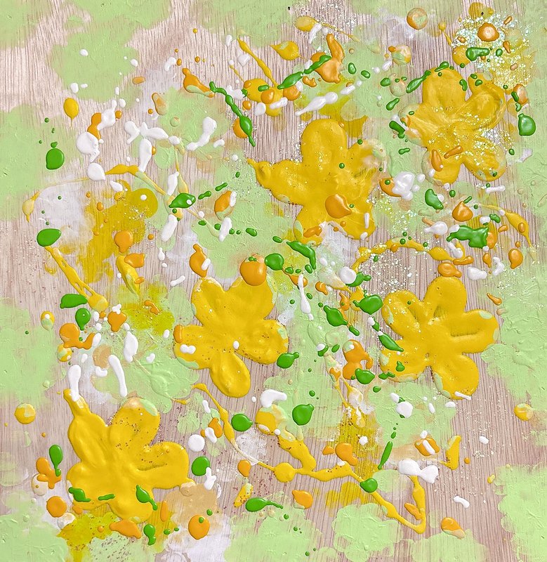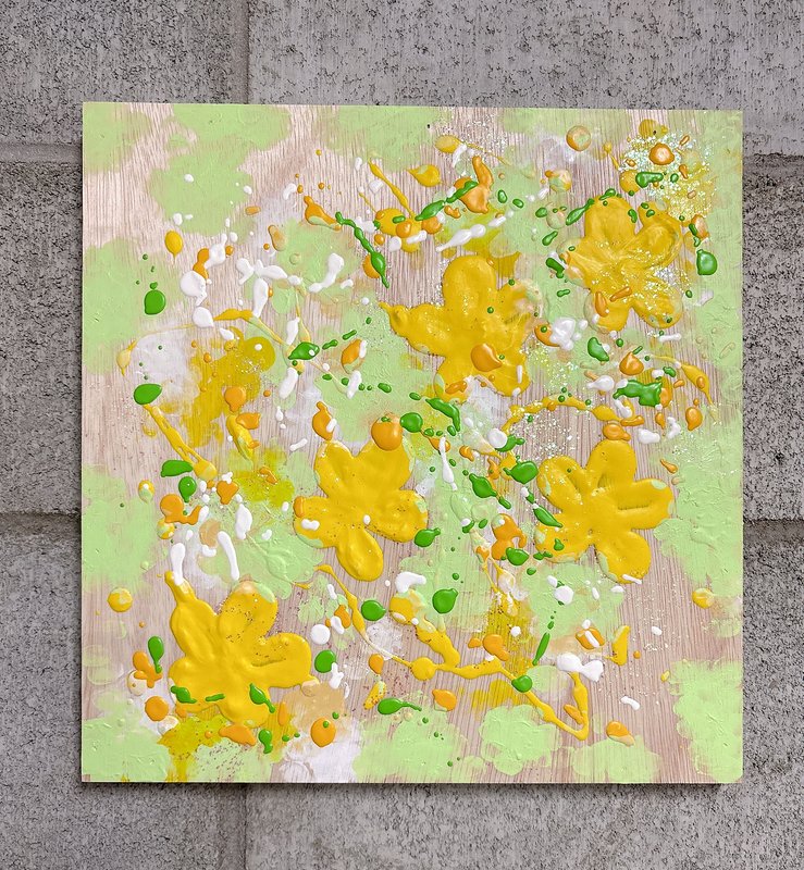 평범한 날이더라도 꽃을 선물 받으면 그 하루는 특별해집니다. 작가는 사람들이 꽃이라는 매개체를 통해 서로의 마음을 전달하는 행위에서 작업의 영감을 얻습니다. 우리에게 익숙한 상징적인 꽃 중 하나로 해바라기가 있습니다. 해바라기가 그려진 작품은 행운, 길상을 의미합니다. 작가의 어사화 또한 해바라기와 같은 역할을 합니다. 작가는 어사화가 사람들에게 좋은 기운과 에너지를 줄 수 있다고 믿으며 이 마음을 작업에 녹여냅니다. 어사화를 하사했던 왕은 흩날리는 꽃잎처럼 세상에 이름을 알리라는 뜻을 담았을 것입니다. 감상자의 성공과 행복을 기원하는 그림은 공간에 긍정적인 기운을 가득 채워줄 것입니다. 꽃다발처럼 화사한 그림을 통해 선물 같은 하루를 보내시길 바랍니다.