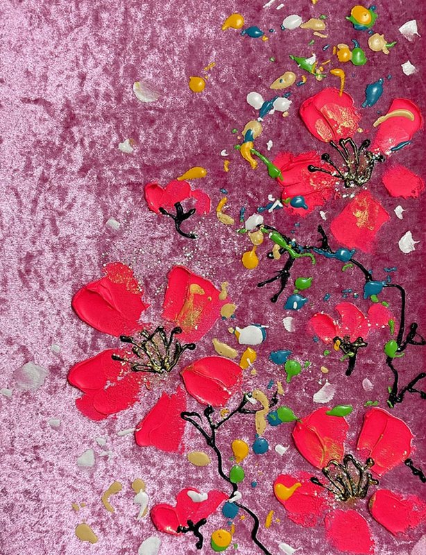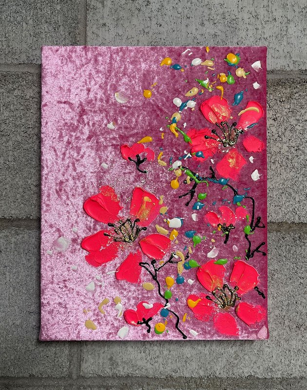 작업의 주요 소재는 어사화이다. 어사화(御賜花)는 왕이 하사한 꽃이라는 의미가 있다. 이 꽃은 관직에 오른 신하에게 하사하는 선물로 성공과 출세를 상징한다. 꽃은 저마다 다른 뜻이 있기 때문에 축하, 애도, 기념 등 다양한 상황에 쓰인다. 꽃은 지속력이 아주 짧다는 특징을 갖는다. 꺾는 순간부터 생명은 빠르게 저물어 간다. 작가는 짧은 수명을 가진 꽃들의 향연을 오래도록 함께 하고 싶은 바람을 담아 그림을 그린다. ‘지속성’에 초점을 맞추었기 때문에, 종이나 한지와 같이 상대적으로 훼손되기 쉬운 재료 대신 나무패널과 벨벳을 작품의 주재료로 선택했다. 벨벳은 흡수력이 좋고 짜임이 단단하여 오랜 시간 퇴색되지 않는다는 장점이 있다. 또한 벨벳 특유의 부드러움은 작품을 더욱 고급스럽게 만들어준다. 어사화라는 동양적 소재가 서양화 재료들과 만나 감상자로 하여금 더욱 호기심을 불러일으킨다.