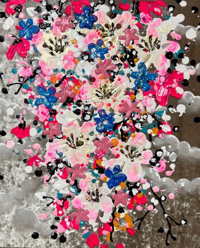 평범한 날이더라도 꽃을 선물 받으면 그 하루는 특별해집니다. 작가는 사람들이 꽃이라는 매개체를 통해 서로의 마음을 전달하는 행위에서 작업의 영감을 얻습니다. 우리에게 익숙한 상징적인 꽃 중 하나로 해바라기가 있습니다. 해바라기가 그려진 작품은 행운, 길상을 의미합니다. 작가의 어사화 또한 해바라기와 같은 역할을 합니다. 작가는 어사화가 사람들에게 좋은 기운과 에너지를 줄 수 있다고 믿으며 이 마음을 작업에 녹여냅니다. 어사화를 하사했던 왕은 흩날리는 꽃잎처럼 세상에 이름을 알리라는 뜻을 담았을 것입니다. 감상자의 성공과 행복을 기원하는 그림은 공간에 긍정적인 기운을 가득 채워줄 것입니다. 꽃다발처럼 화사한 그림을 통해 선물 같은 하루를 보내시길 바랍니다.