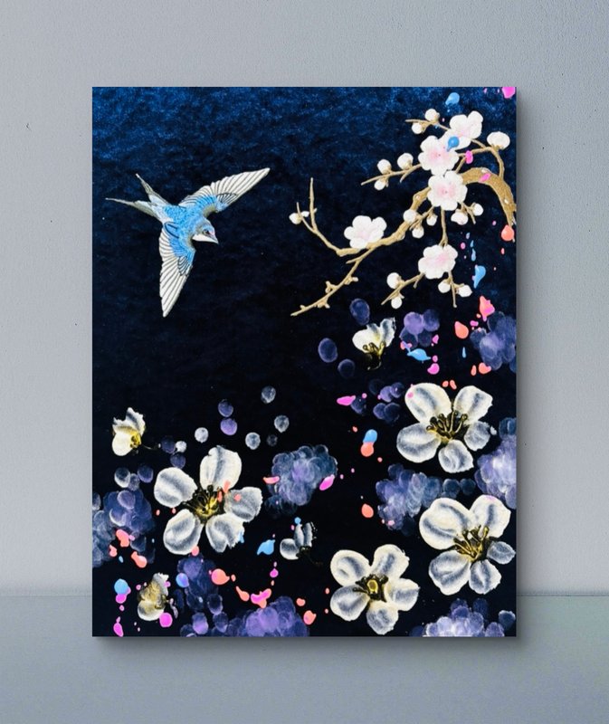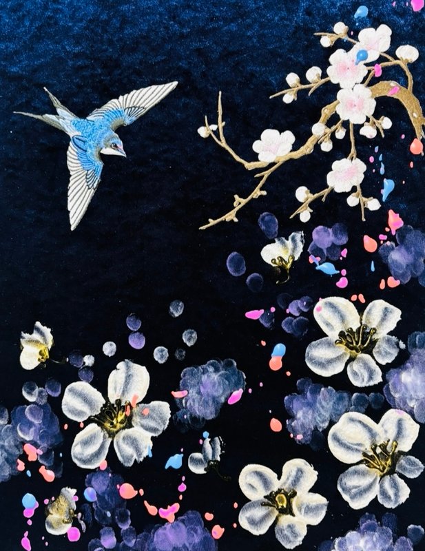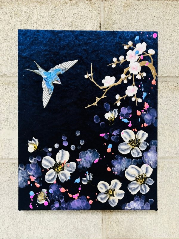 작업의 주요 소재는 어사화이다. 어사화(御賜花)는 왕이 하사한 꽃이라는 의미가 있다. 이 꽃은 관직에 오른 신하에게 하사하는 선물로 성공과 출세를 상징한다. 꽃은 저마다 다른 뜻이 있기 때문에 축하, 애도, 기념 등 다양한 상황에 쓰인다. 꽃은 지속력이 아주 짧다는 특징을 갖는다. 꺾는 순간부터 생명은 빠르게 저물어 간다. 작가는 짧은 수명을 가진 꽃들의 향연을 오래도록 함께 하고 싶은 바람을 담아 그림을 그린다. ‘지속성’에 초점을 맞추었기 때문에, 종이나 한지와 같이 상대적으로 훼손되기 쉬운 재료 대신 나무패널과 벨벳을 작품의 주재료로 선택했다. 벨벳은 흡수력이 좋고 짜임이 단단하여 오랜 시간 퇴색되지 않는다는 장점이 있다. 또한 벨벳 특유의 부드러움은 작품을 더욱 고급스럽게 만들어준다. 어사화라는 동양적 소재가 서양화 재료들과 만나 감상자로 하여금 더욱 호기심을 불러일으킨다.