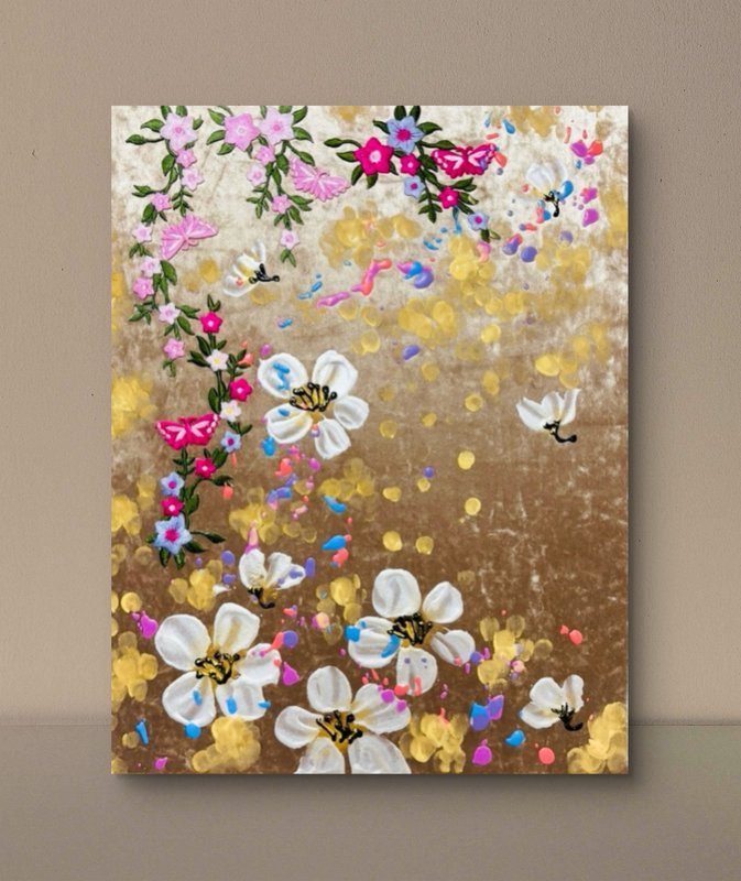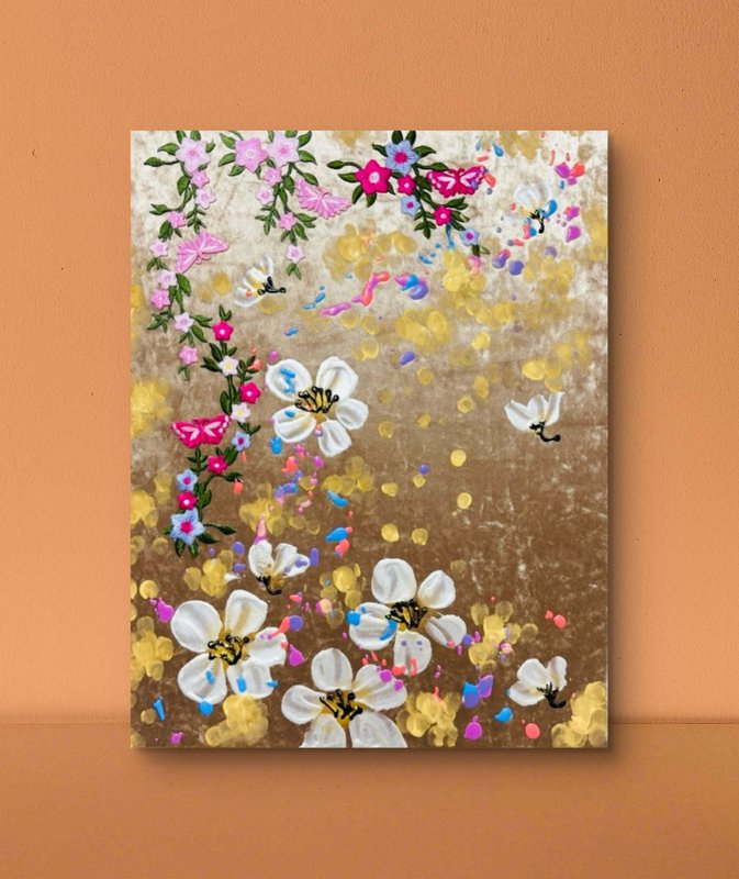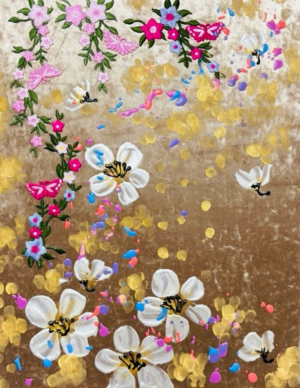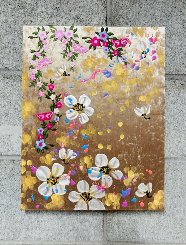 작업의 주요 소재는 어사화이다. 어사화(御賜花)는 왕이 하사한 꽃이라는 의미가 있다. 이 꽃은 관직에 오른 신하에게 하사하는 선물로 성공과 출세를 상징한다. 꽃은 저마다 다른 뜻이 있기 때문에 축하, 애도, 기념 등 다양한 상황에 쓰인다. 꽃은 지속력이 아주 짧다는 특징을 갖는다. 꺾는 순간부터 생명은 빠르게 저물어 간다. 작가는 짧은 수명을 가진 꽃들의 향연을 오래도록 함께 하고 싶은 바람을 담아 그림을 그린다. ‘지속성’에 초점을 맞추었기 때문에, 종이나 한지와 같이 상대적으로 훼손되기 쉬운 재료 대신 나무패널과 벨벳을 작품의 주재료로 선택했다. 벨벳은 흡수력이 좋고 짜임이 단단하여 오랜 시간 퇴색되지 않는다는 장점이 있다. 또한 벨벳 특유의 부드러움은 작품을 더욱 고급스럽게 만들어준다. 어사화라는 동양적 소재가 서양화 재료들과 만나 감상자로 하여금 더욱 호기심을 불러일으킨다.