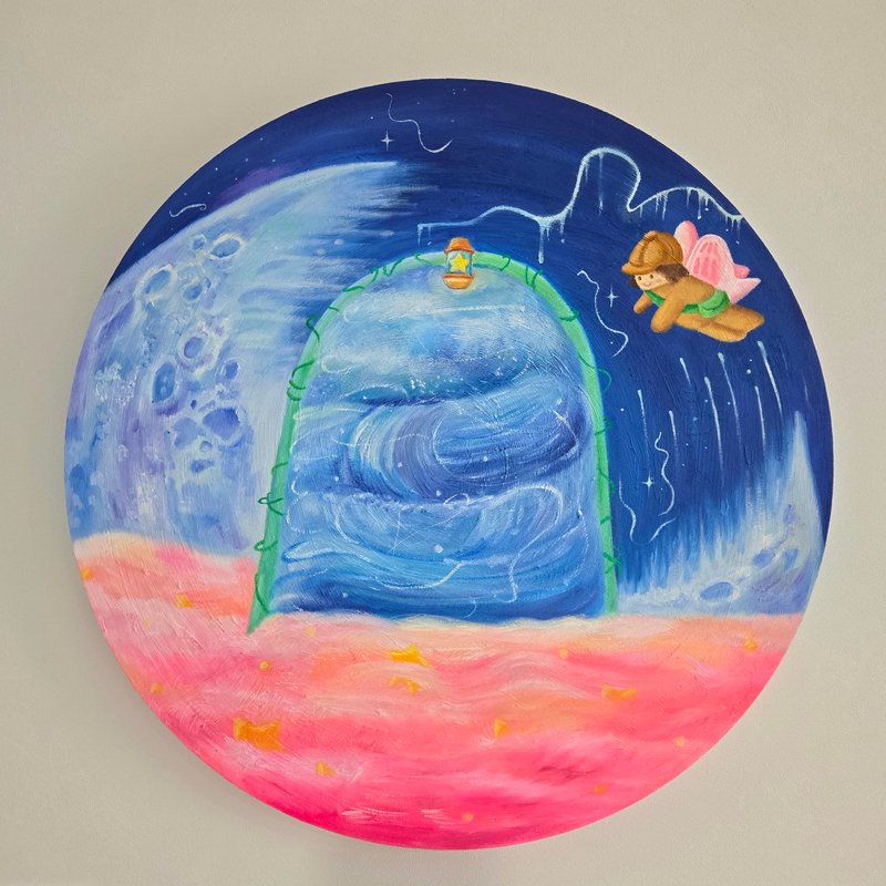 마음이 따뜻해지는 그림은 어떤 그림일까요? 김다빈 작가의 작품이 바로 그런 그림은 아닐까 하는 생각이 듭니다. 아이들이 좋아하는 것들을 잔뜩 그린 것 같은 그림은 사실 우리가 모두 좋아하는 대상을 그려냈습니다. 누구나 있는 어린 시절, 우리는 모두 솜사탕을, 아이스크림을, 반짝이는 별과 달을 좋아하고 동경했습니다. 김다빈 작가는 이를 동화 같은 화면으로 재구성하고 몽글몽글한 느낌으로, 파스텔 색조의 색감으로 가득 담아내어 추억을 회상합니다. 환상의 세계, 상상 속 이야기와 같은 것들만 가득한 김다빈 작가의 작품 세계는 감상자들에게 희망적이었던 과거 유년 시절을 떠올리게 만들며 현재를 위로합니다. 작가의 동심이 가득 담긴 작품 속에서 나의 동심은 어떠한지, 어떠했는지 한번 생각해 보며 감상해 보는 건 어떨까요?