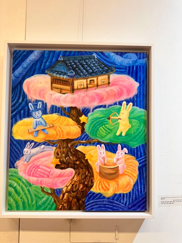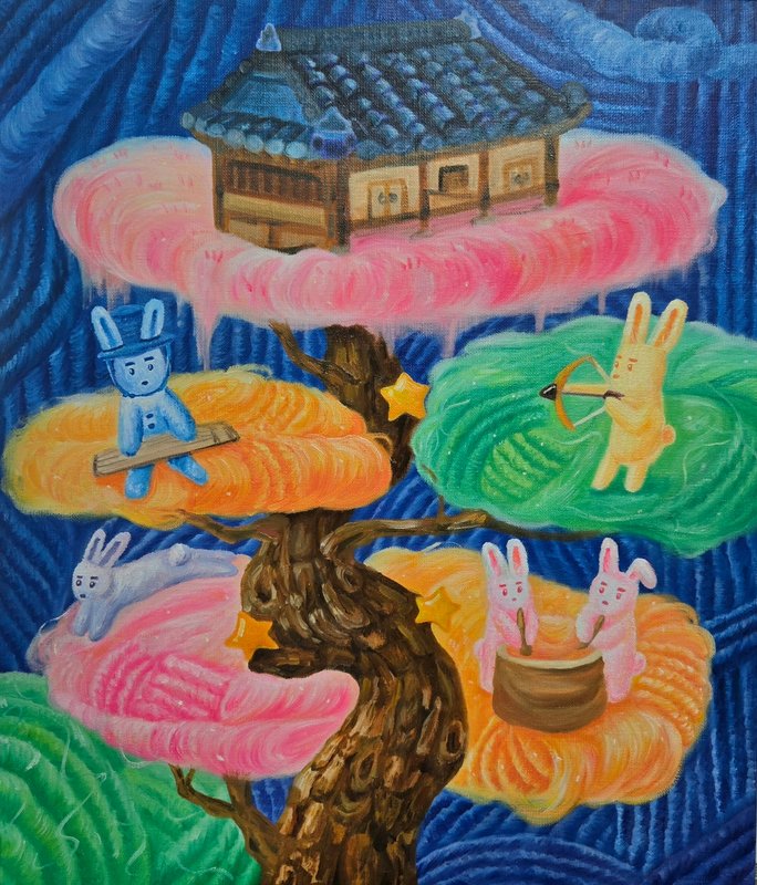 마음이 따뜻해지는 그림은 어떤 그림일까요? 김다빈 작가의 작품이 바로 그런 그림은 아닐까 하는 생각이 듭니다. 아이들이 좋아하는 것들을 잔뜩 그린 것 같은 그림은 사실 우리가 모두 좋아하는 대상을 그려냈습니다. 누구나 있는 어린 시절, 우리는 모두 솜사탕을, 아이스크림을, 반짝이는 별과 달을 좋아하고 동경했습니다. 김다빈 작가는 이를 동화 같은 화면으로 재구성하고 몽글몽글한 느낌으로, 파스텔 색조의 색감으로 가득 담아내어 추억을 회상합니다. 환상의 세계, 상상 속 이야기와 같은 것들만 가득한 김다빈 작가의 작품 세계는 감상자들에게 희망적이었던 과거 유년 시절을 떠올리게 만들며 현재를 위로합니다. 작가의 동심이 가득 담긴 작품 속에서 나의 동심은 어떠한지, 어떠했는지 한번 생각해 보며 감상해 보는 건 어떨까요?